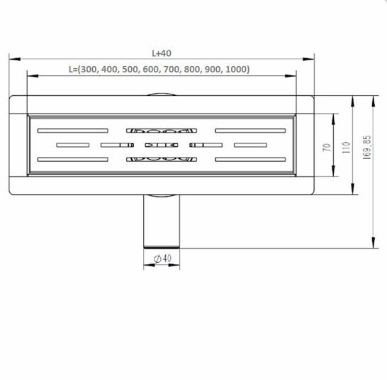 Душевой трап для скрытого монтажа под плитку 400мм, металлик, VIEIR DL40A