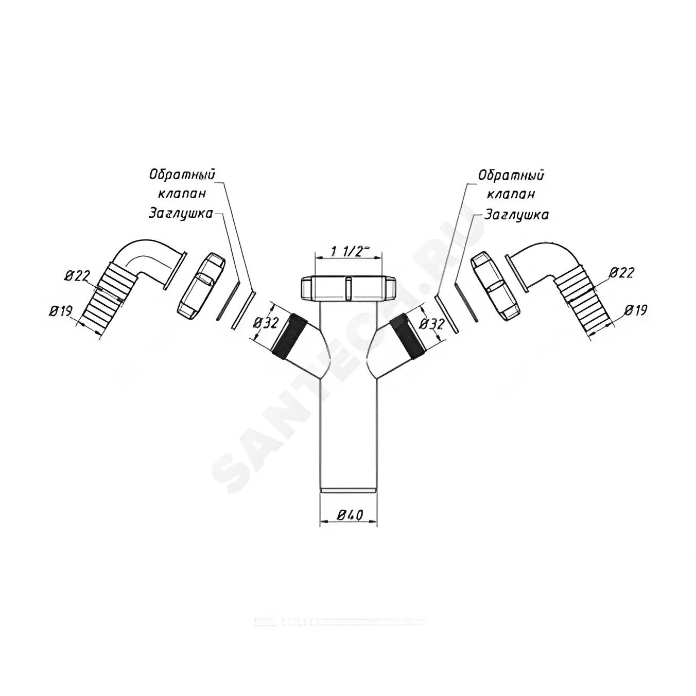 Патрубок для сифона 1 1/2"x40 с 2-мя отводами (штуцерами) Орио А-4176 интересное: