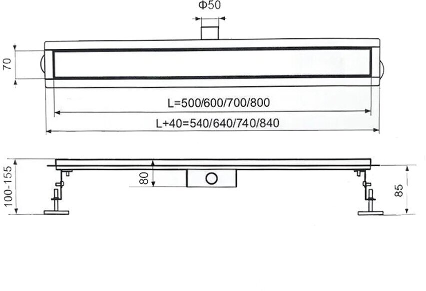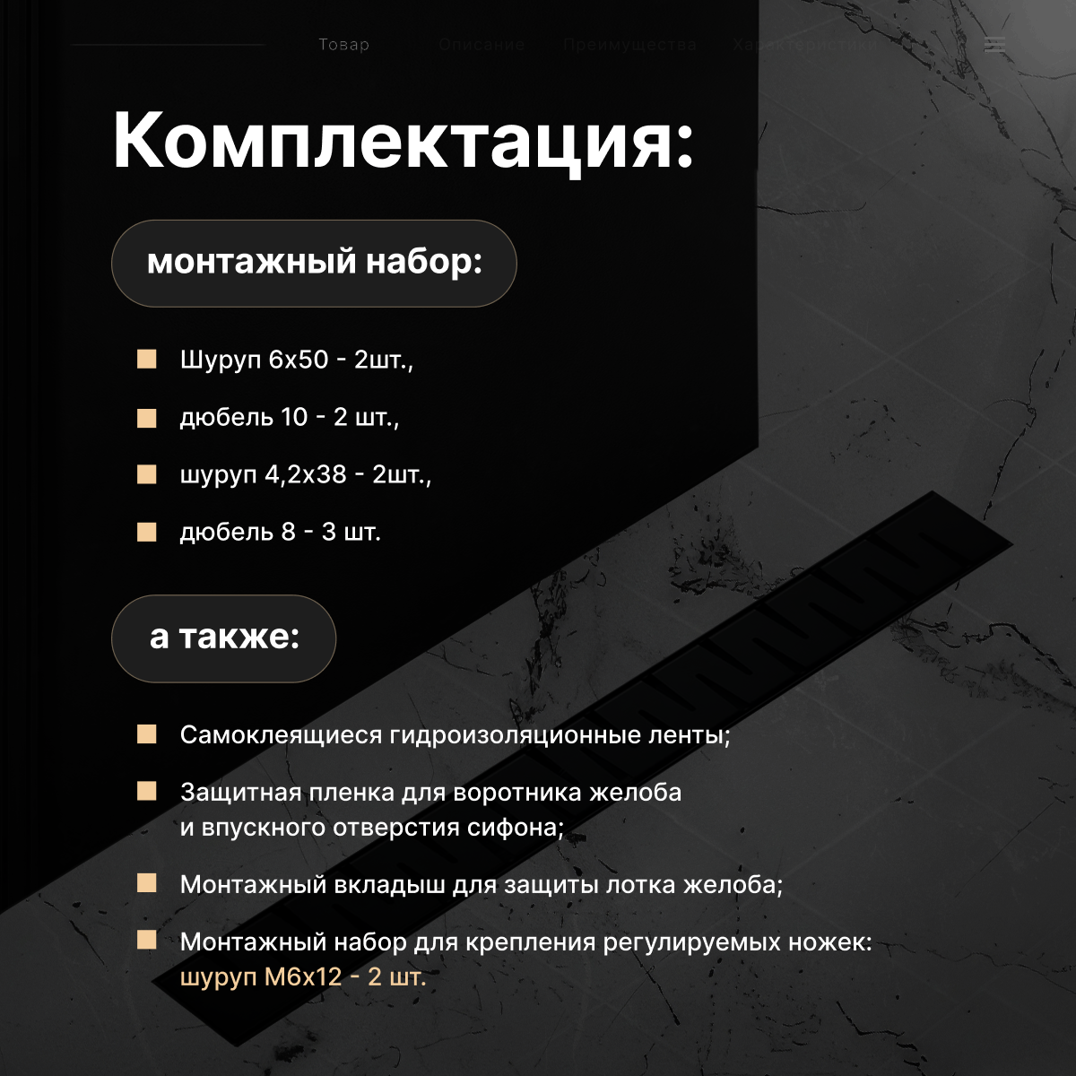 Черный трап BAD465002BK душевой под плитку с горизонтальным выпуском из нержавеющей стали, сухой затвор, 70х500 мм интересное: