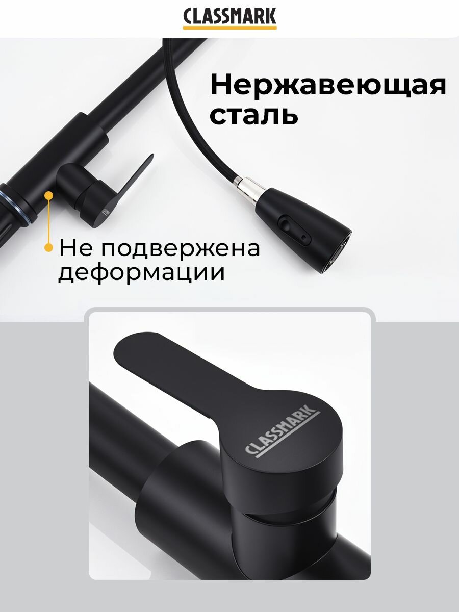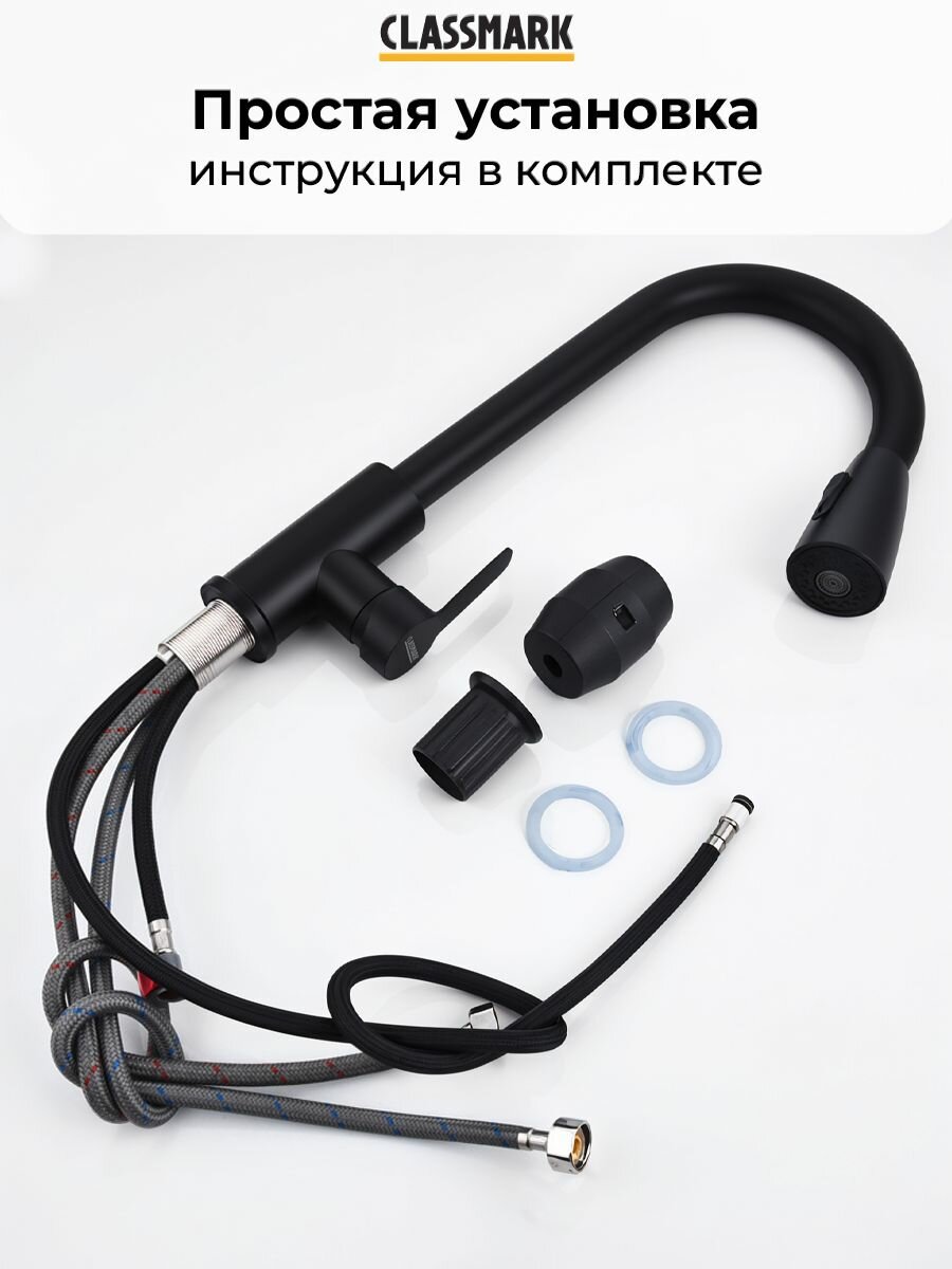 Смеситель для кухни Classmark с гибким изливом, однорычажный, для раковины и мойки, черный интересное: