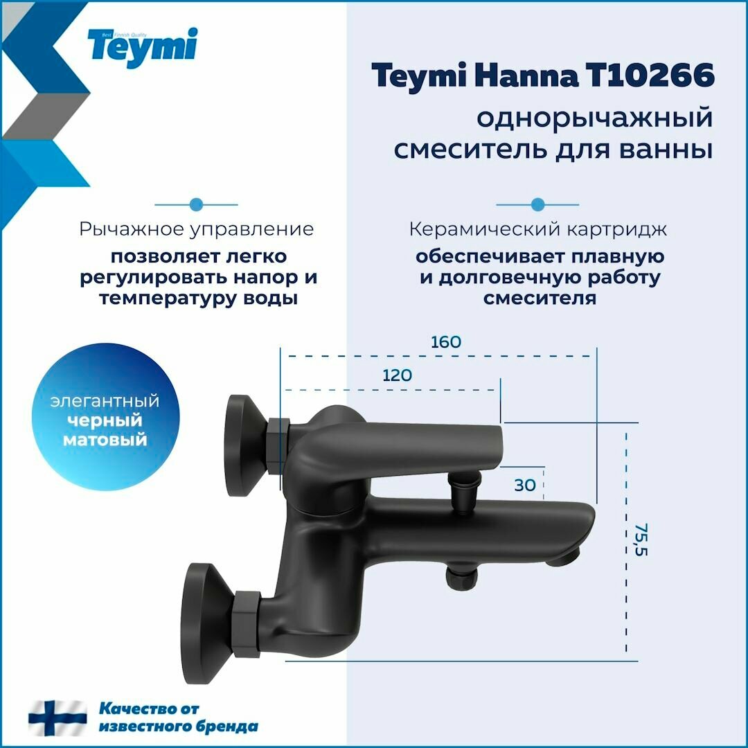 Купить Смеситель для ванны черный матовый Teymi Hanna T10266
