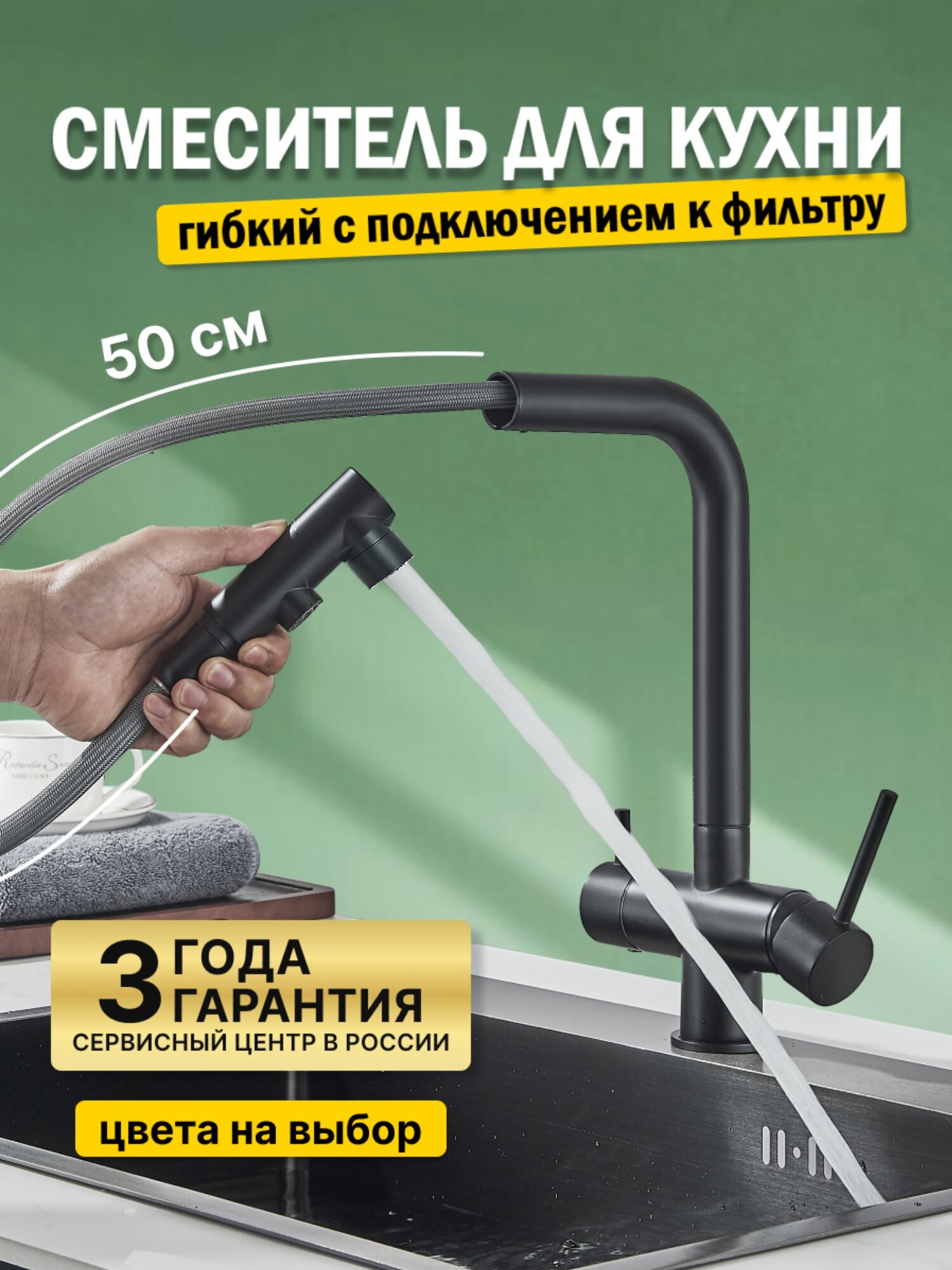 Смеситель для кухни DHome с фильтром и выдвижным изливом черный интересное: