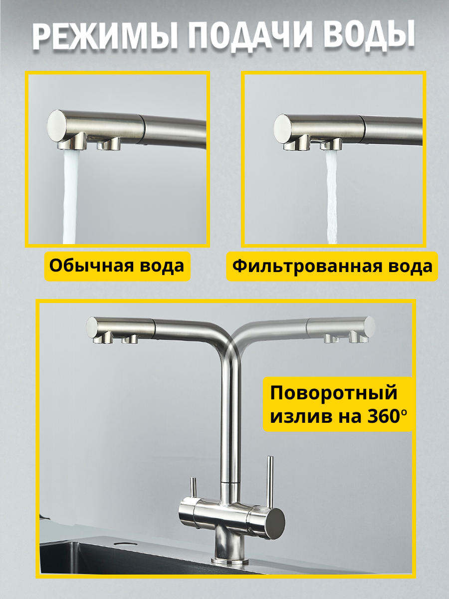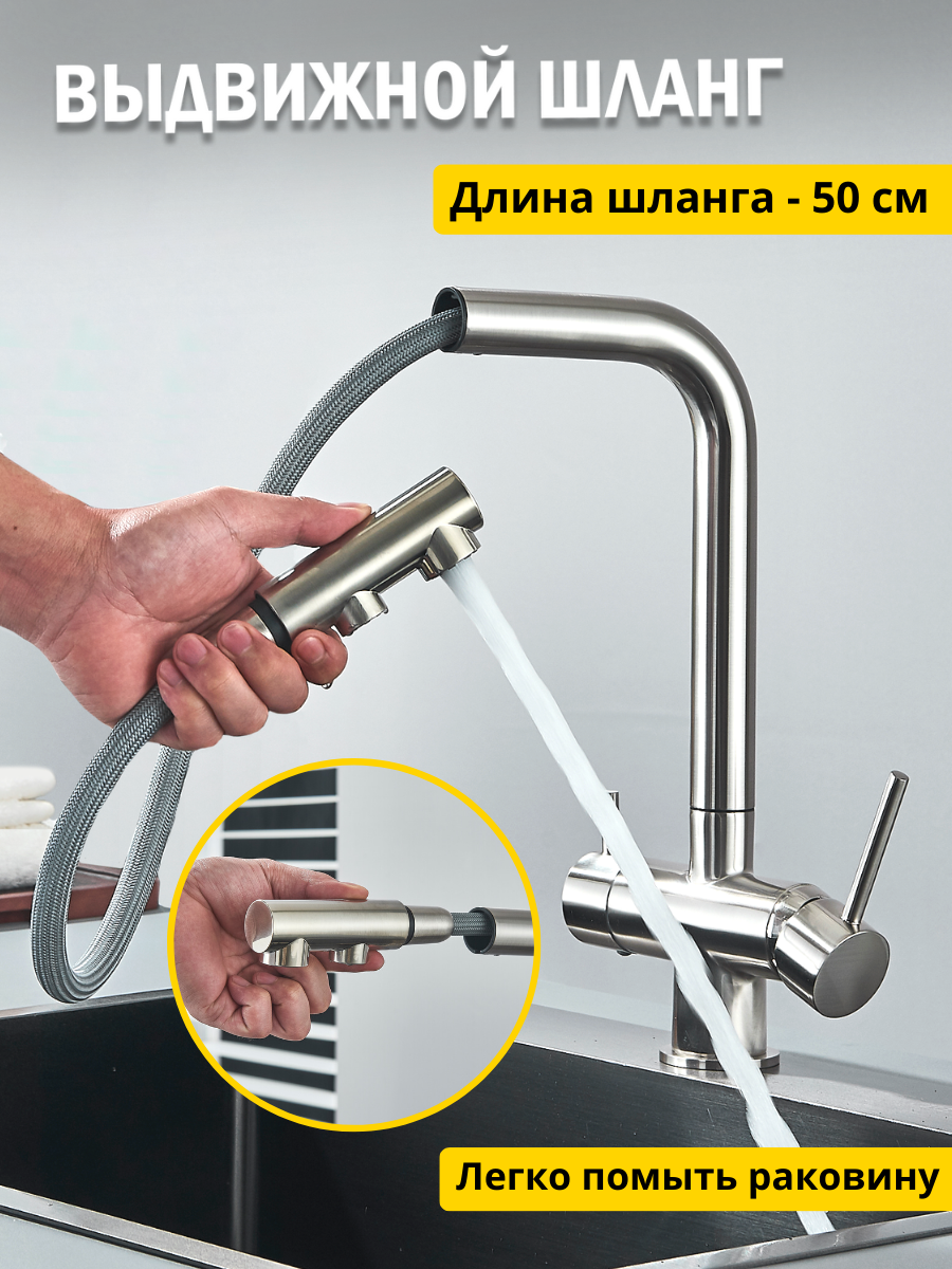 Смеситель для кухни DHome с фильтром и выдвижным изливом хром интересное:
