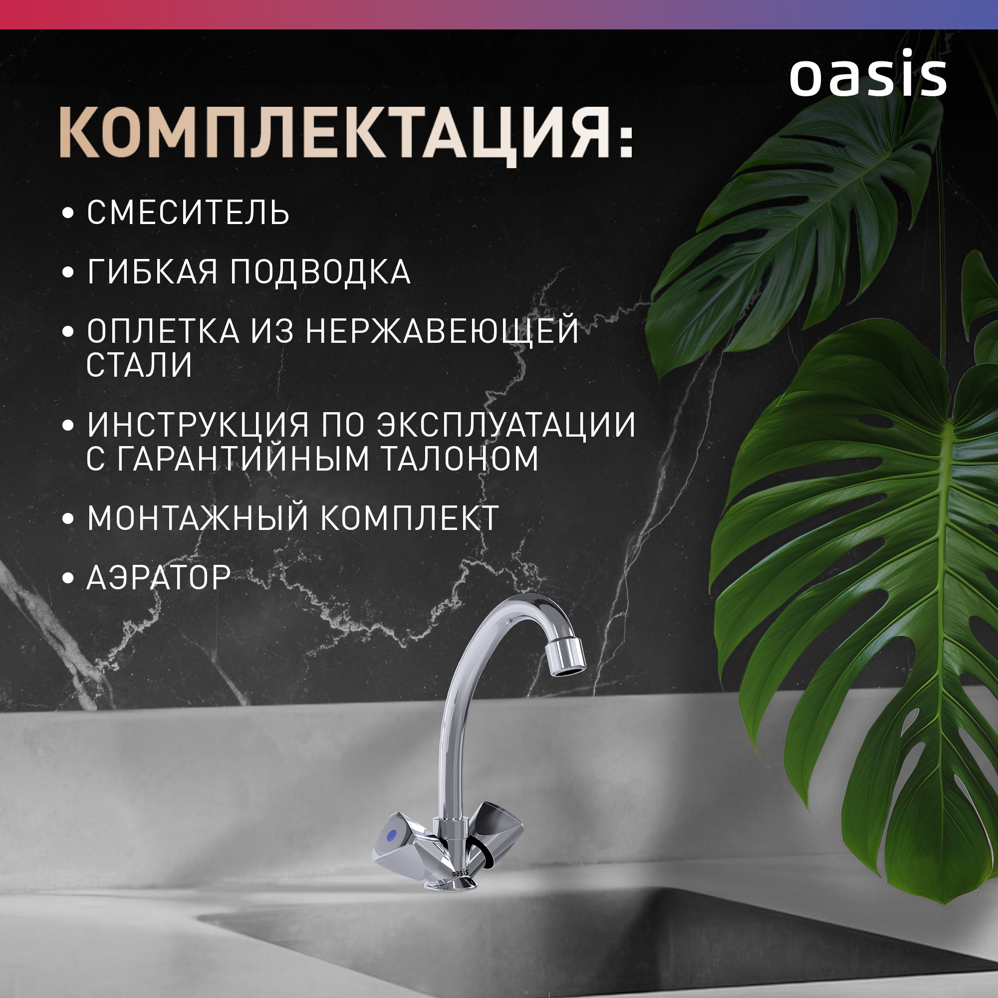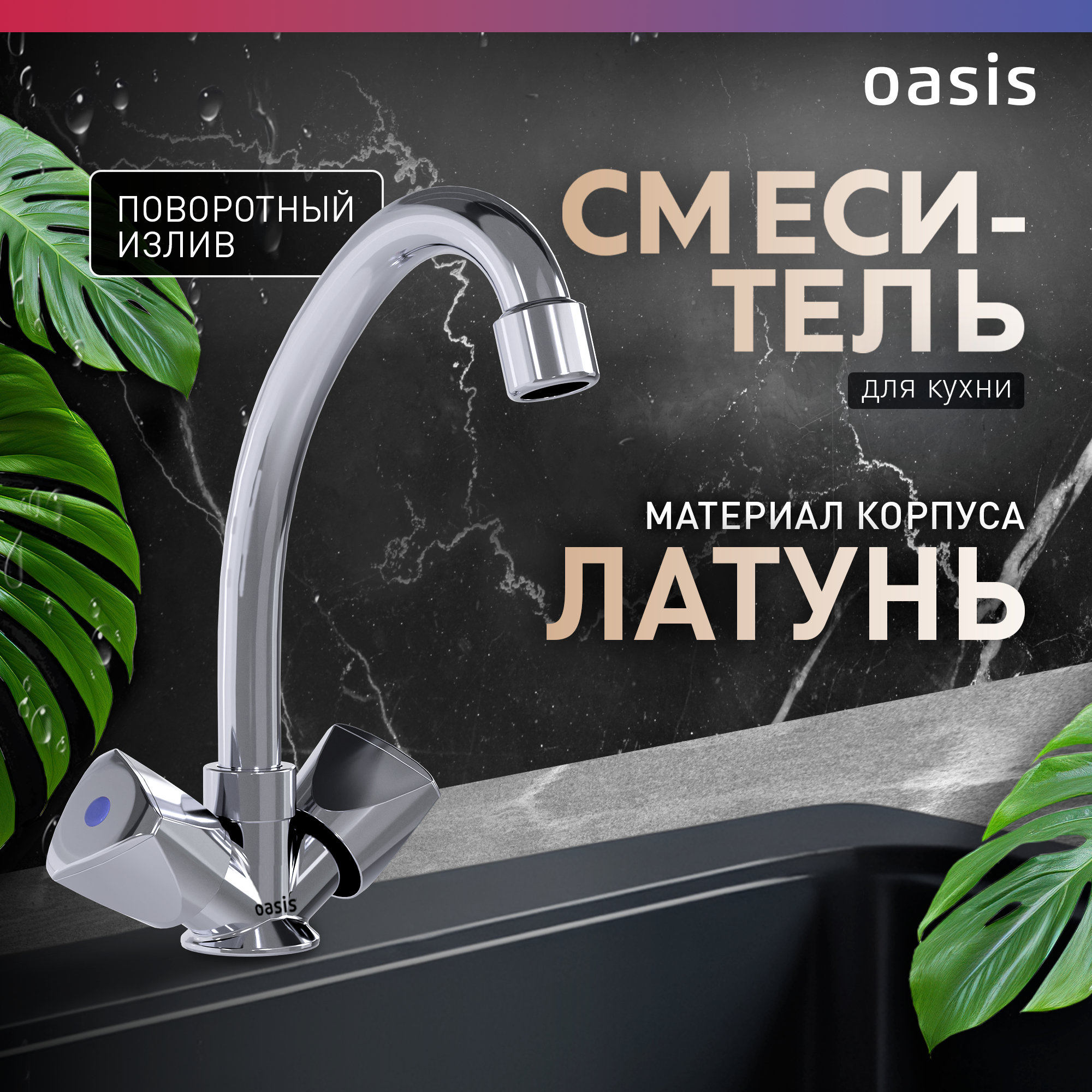 Смеситель для кухни на мойку из латуни двухвентильный Oasis L1003HCSh интересное: