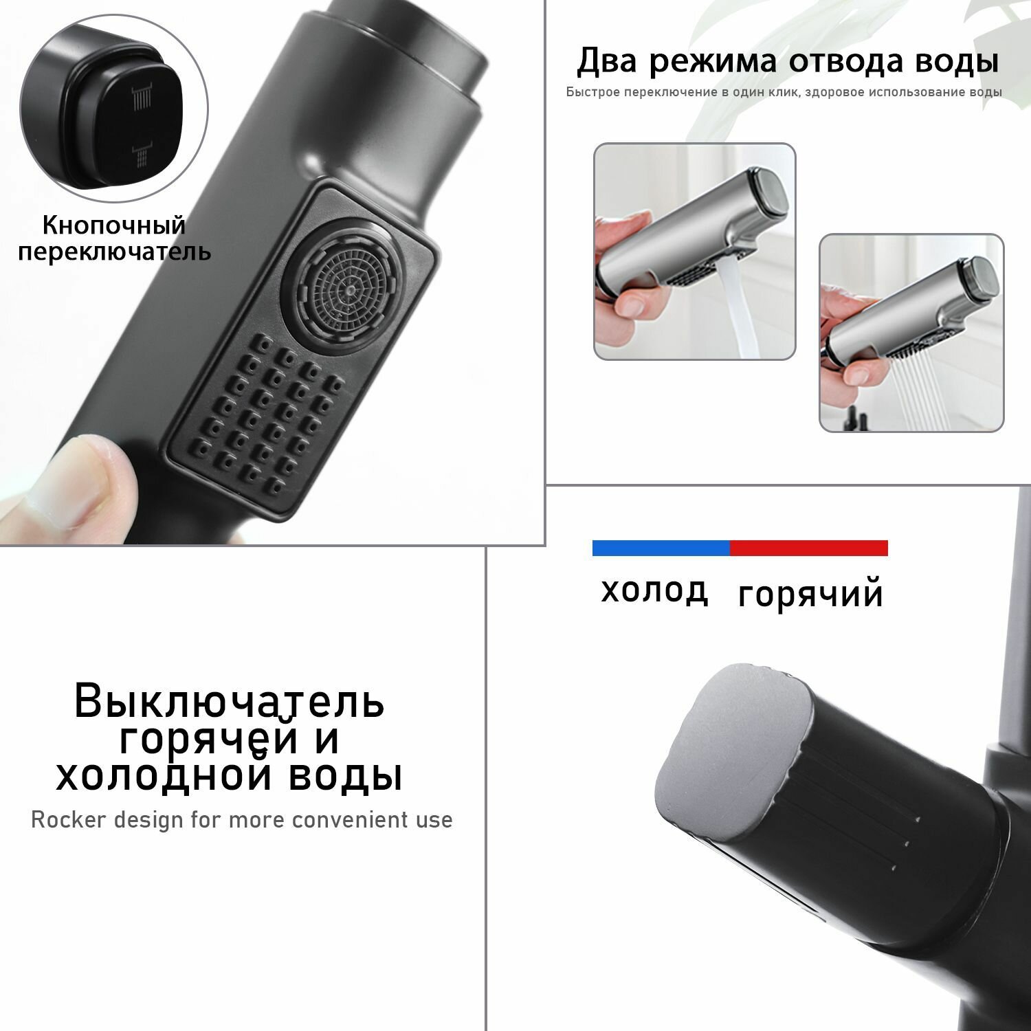 Смеситель для кухни, с гибким изливом, смеситель для раковины, с фильтром, вращением на 360 градусов и аэратором, черный интересное: