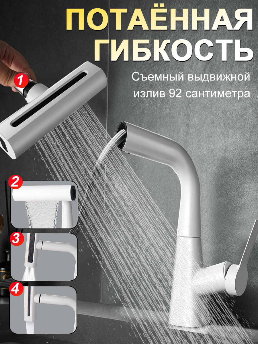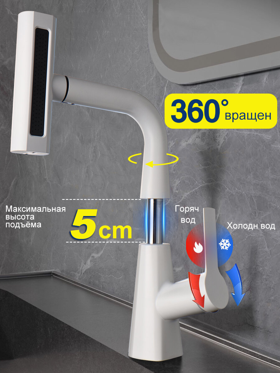 Смеситель на кухню, смеситель для кухни с гибким изливом, 5 режимов работы,310mm, Белый интересное: