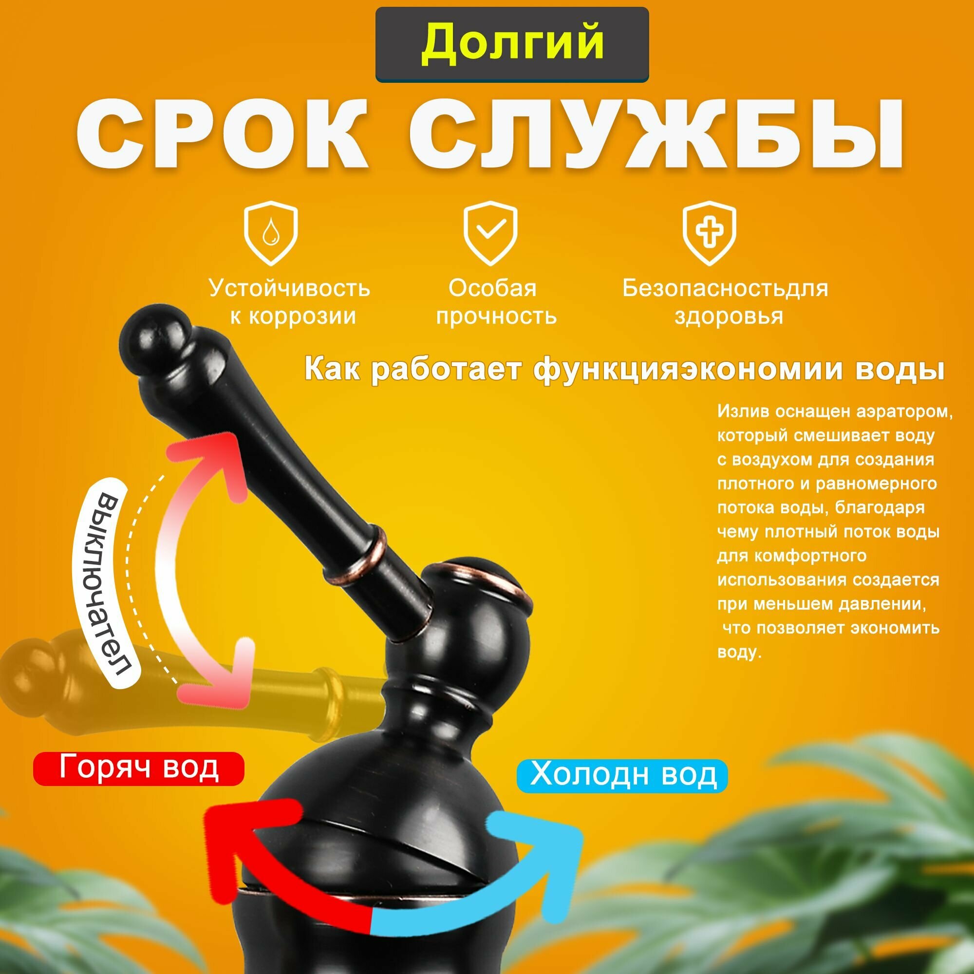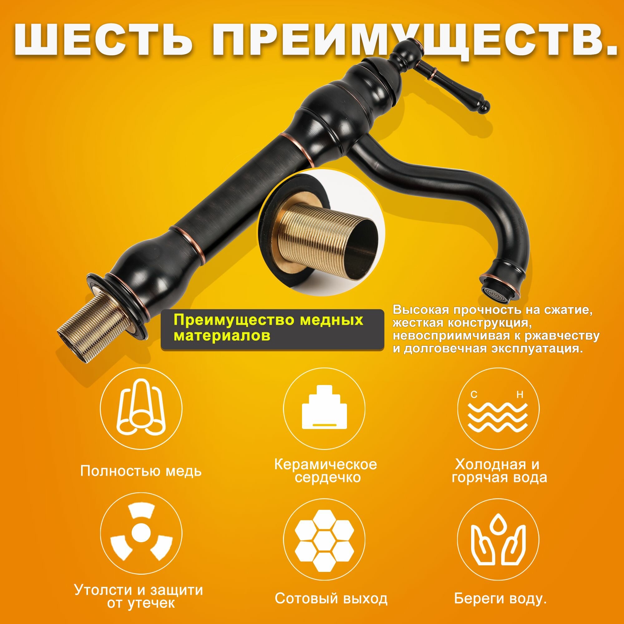 СохранитьСмеситель для накладной раковины в ванную, ванны, с душем, душа, кухни, элегантный антикварный дизайн, черный, 225 мм интересное: