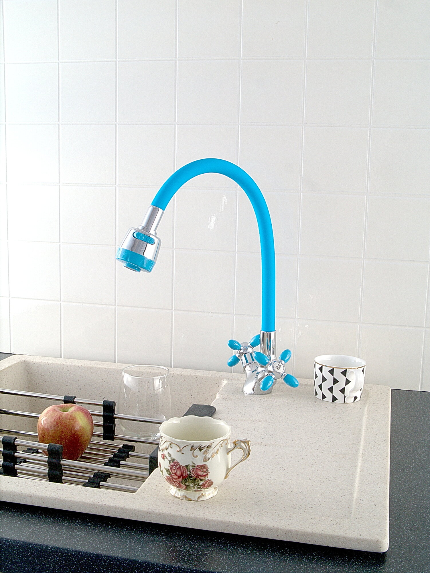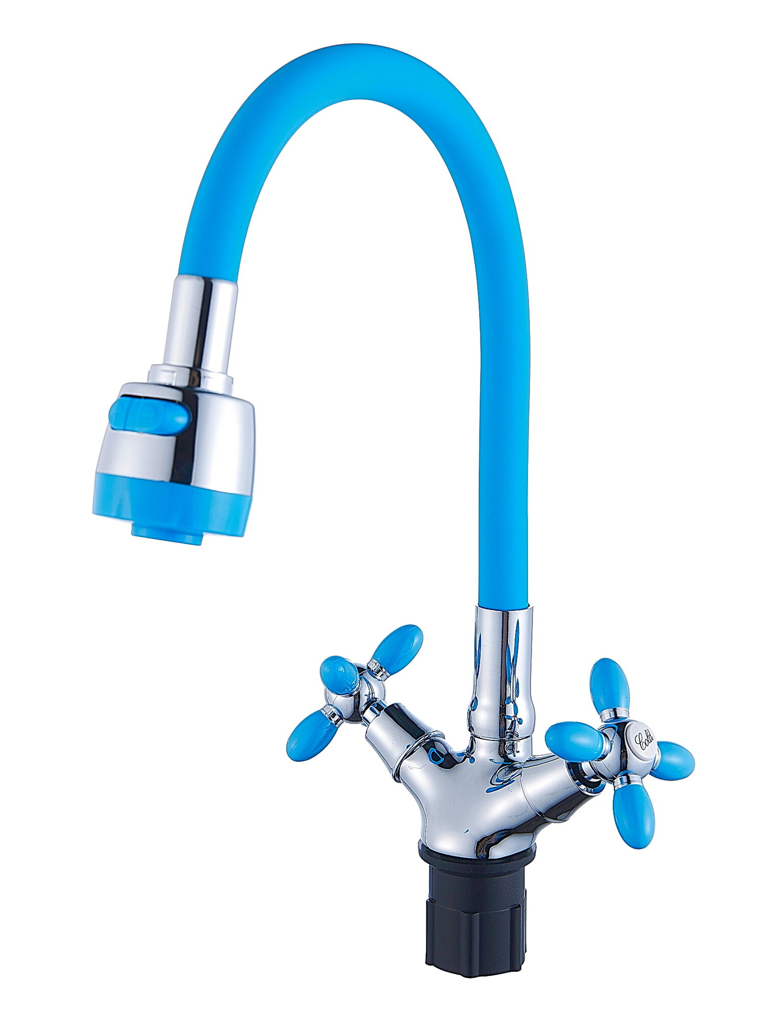 Смеситель для кухни с гибким изливом Эверест B57-071B, вентильный, силумин, желтый/хром
