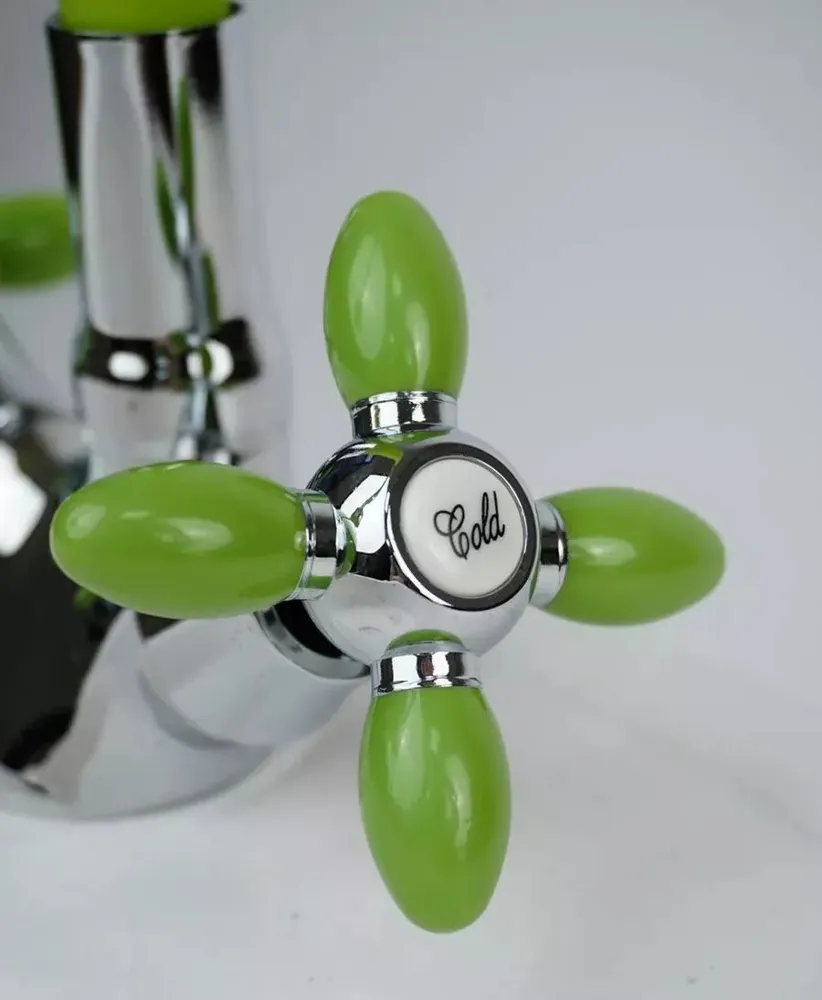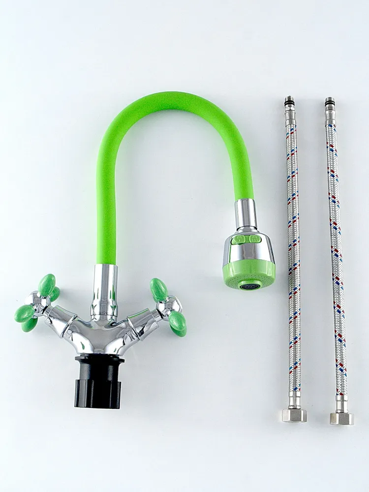 Купить Смеситель для кухни Эверест с гибким изливом B57-071E, вентильный, силумин, зеленый/хром