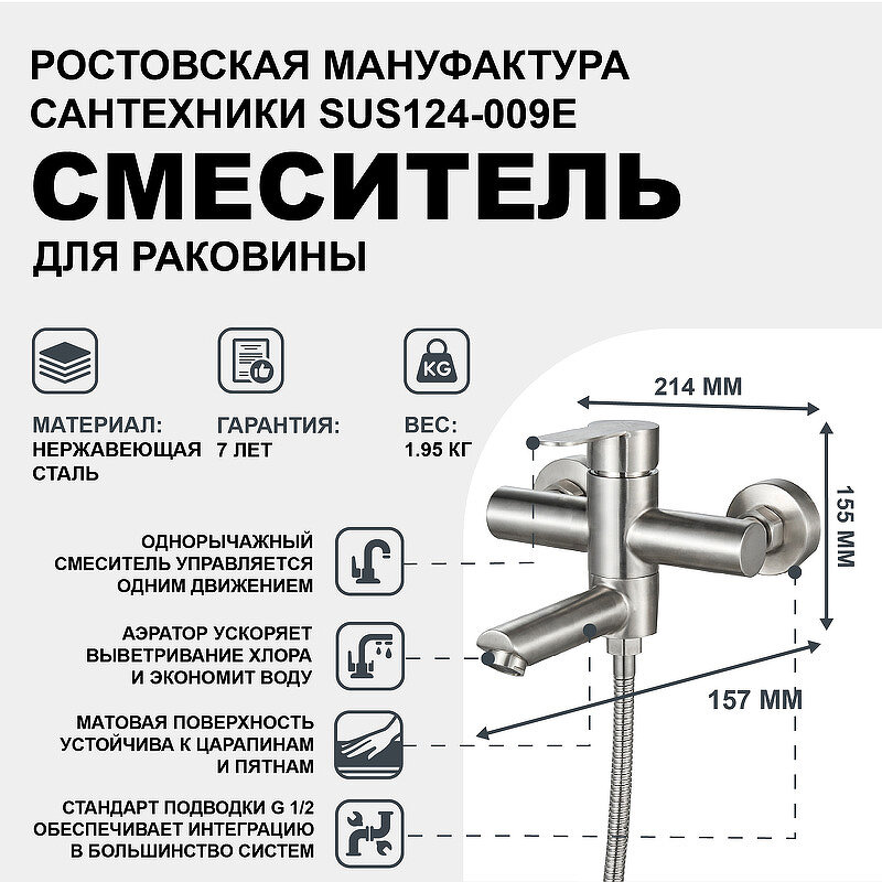 Смеситель для ванной SUS124-009E Ростовская Мануфактура Сантехники нержавеющая сталь интересное: