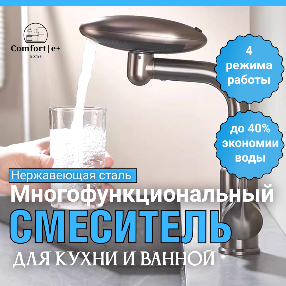Смеситель 4 в 1 "Многофункциональный", нержавеющая сталь, каскадный излив интересное: