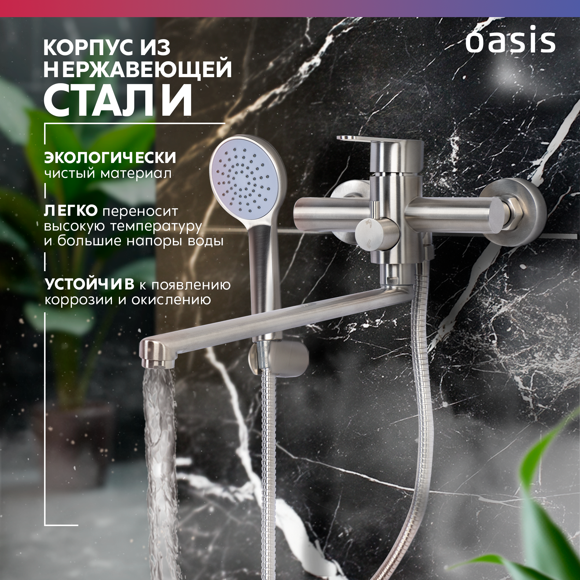 Смеситель для ванны с душем и длинным изливом из нержавеющей стали Oasis SUS2002M_Car интересное: