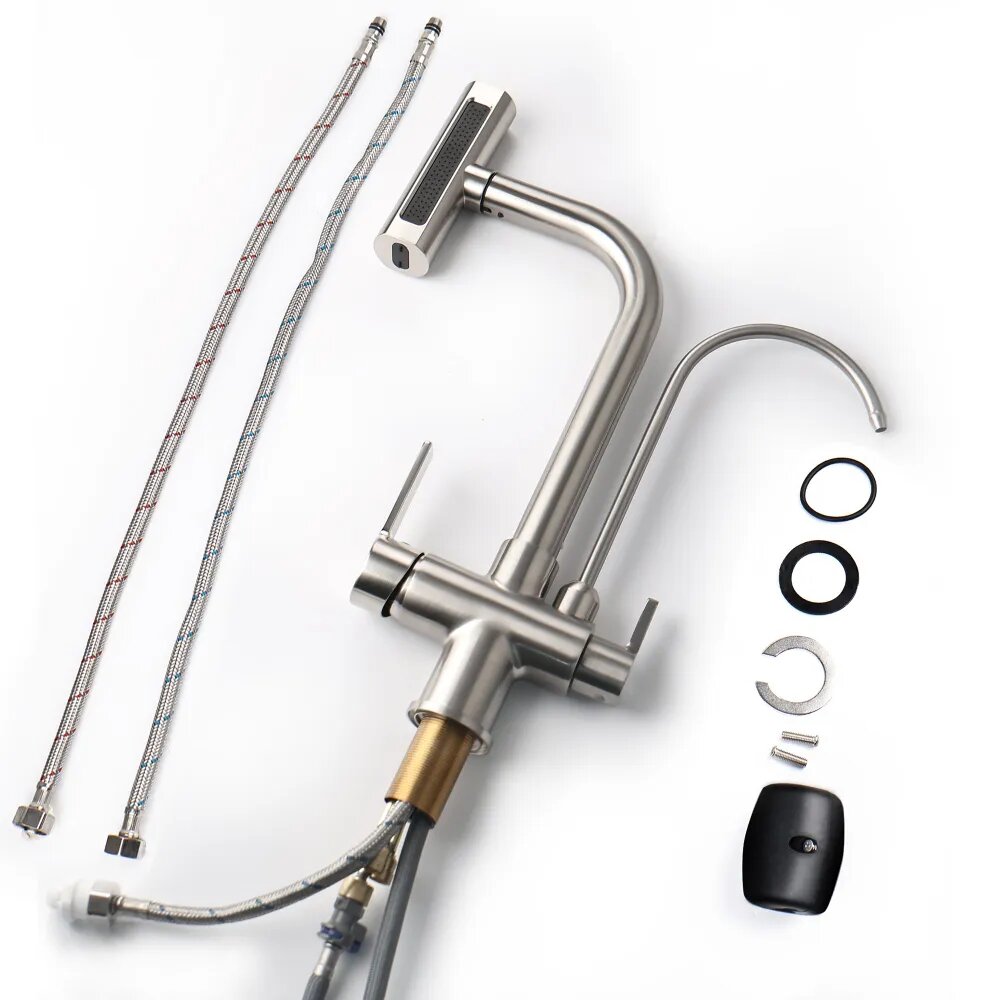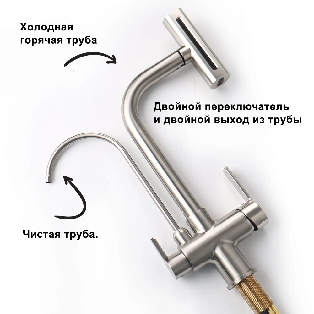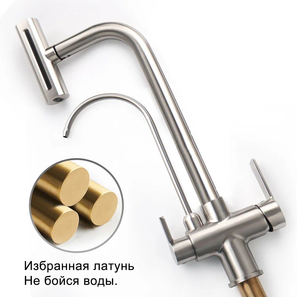 Смеситель на кухню, смеситель для кухни с гибким изливом, 2 в 1,360mm, никель интересное: