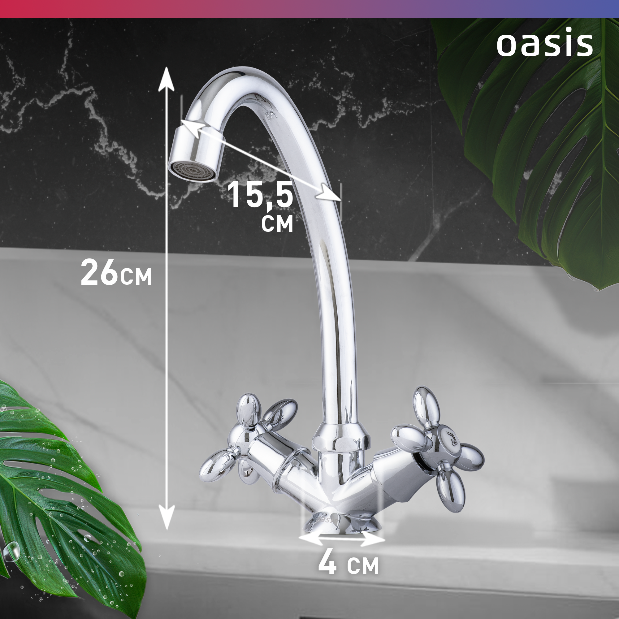 Смеситель для кухни на мойку из латуни двухвентильный Oasis L1000HCG интересное: