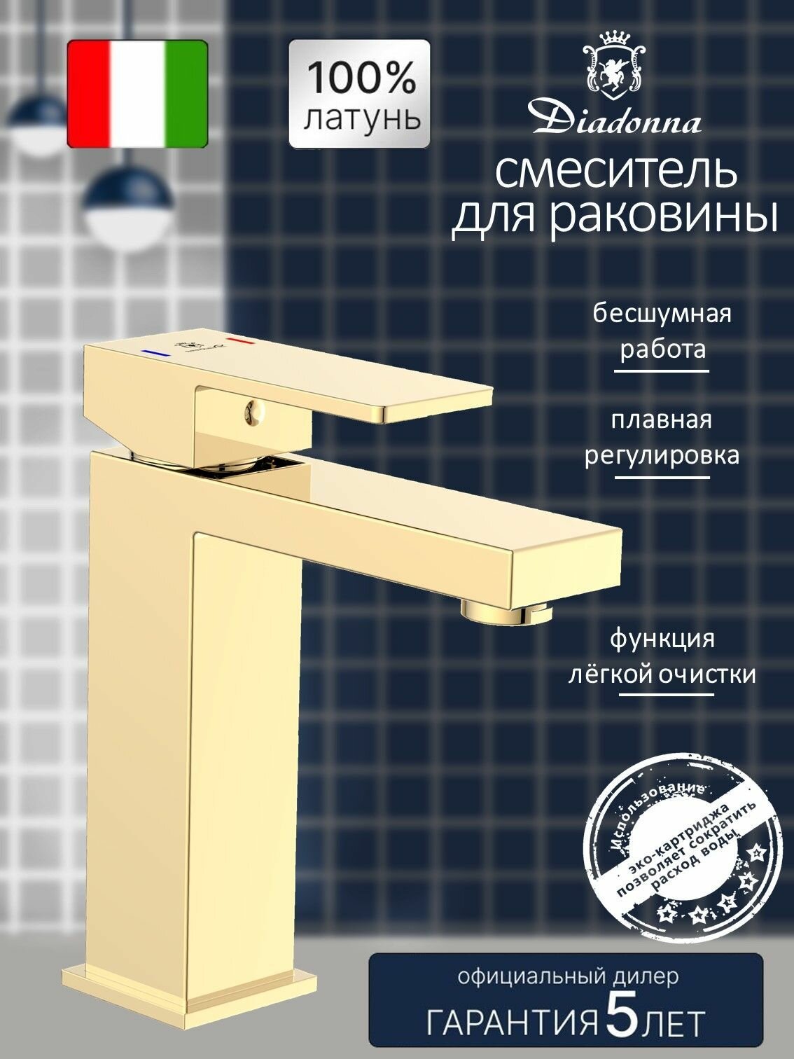 Смеситель для раковины Diadonna D106-10J для умывальника, кран для раковины в ванную, латунь, золото интересное: