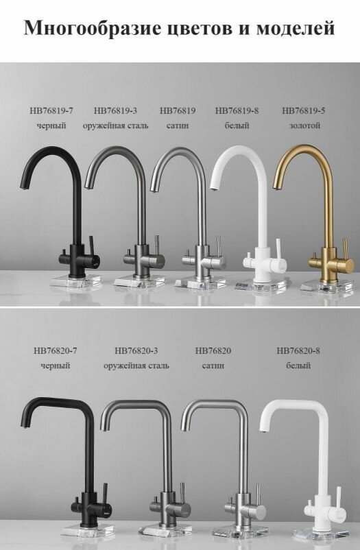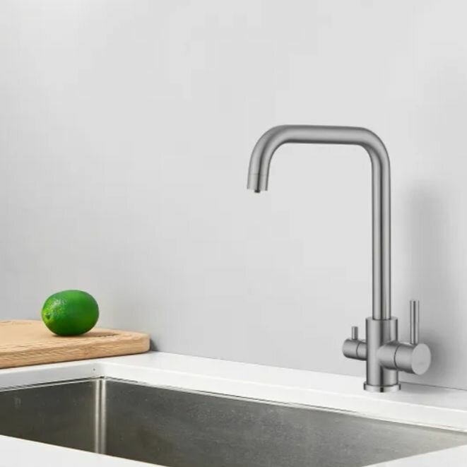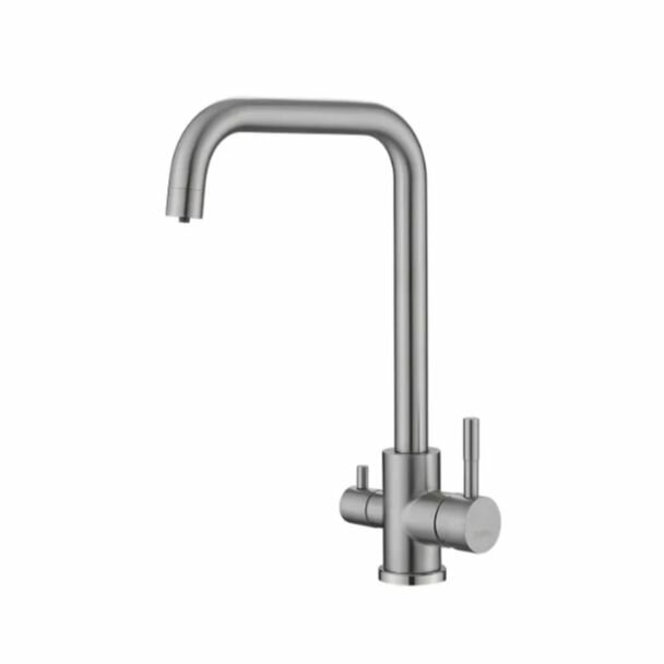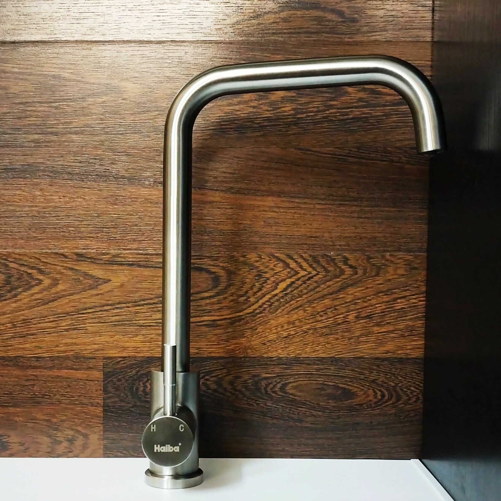 Смеситель для кухни с высоким изливом и подключением фильтра питьевой воды (нержавеющая сталь) HAIBA HB43829 цвет-сатин. интересное: