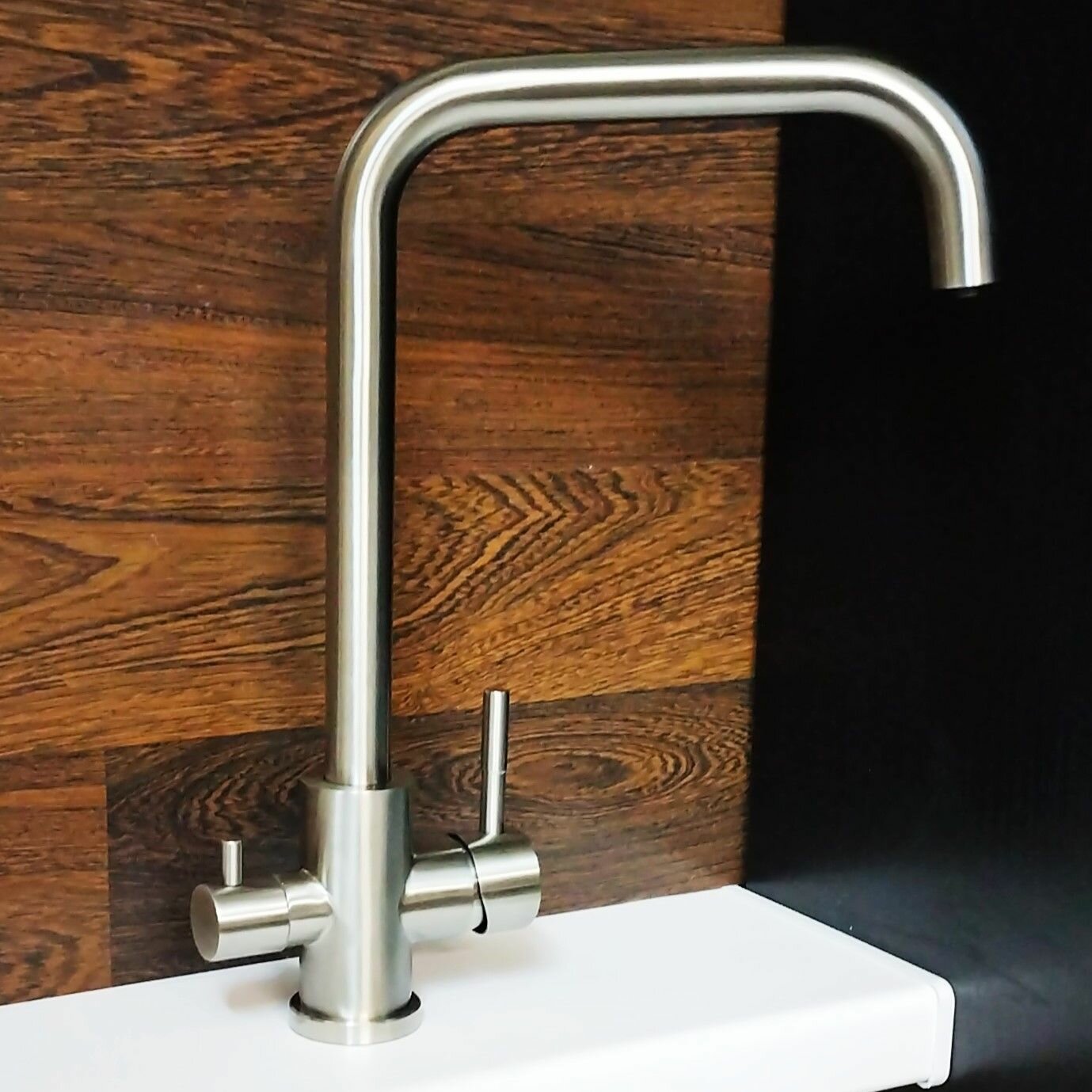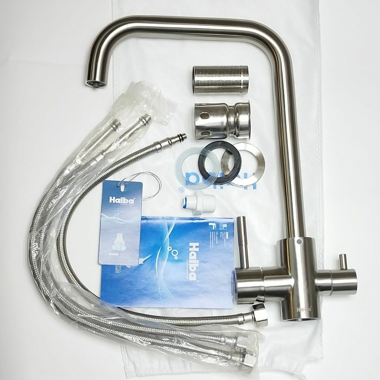 Купить Смеситель для кухни с высоким изливом и подключением фильтра питьевой воды (нержавеющая сталь) HAIBA HB43829 цвет-сатин.