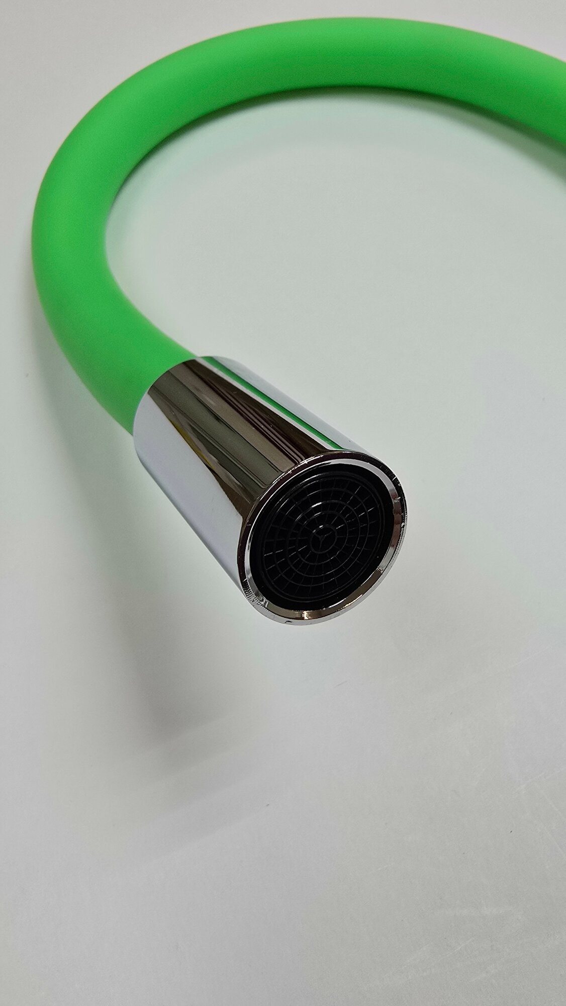 СохранитьСмеситель для кухни, с гибким изливом зелёного цвета, корпус из нержавеющей стали, цвет хром, Искусство Потока интересное: