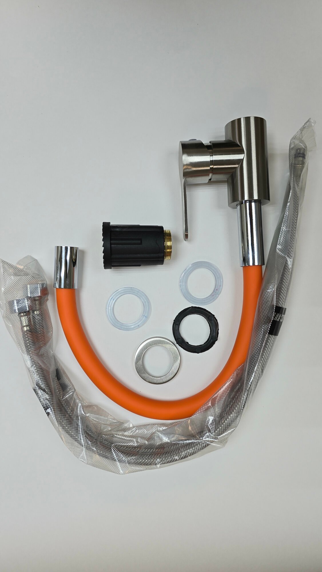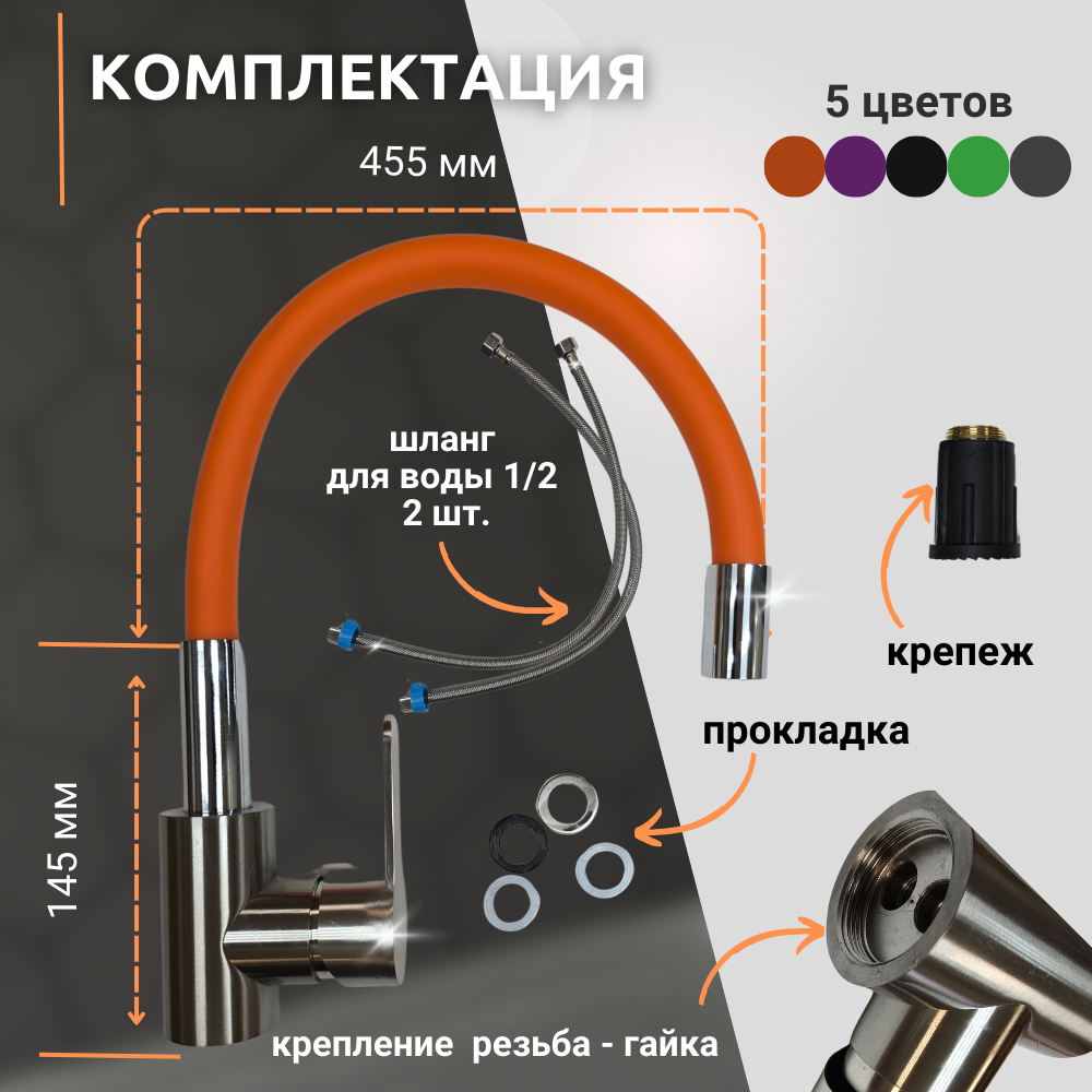 Купить Смеситель для кухни, с гибким изливом оранжевого цвета, корпус из нержавеющей стали, цвет хром, Искусство Потока