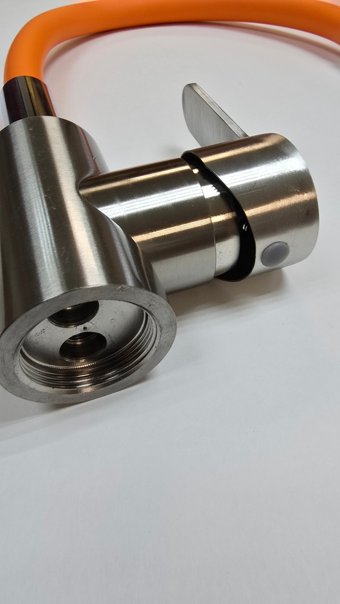 СохранитьСмеситель для кухни, с гибким изливом оранжевого цвета, корпус из нержавеющей стали, цвет хром, Искусство Потока интересное: