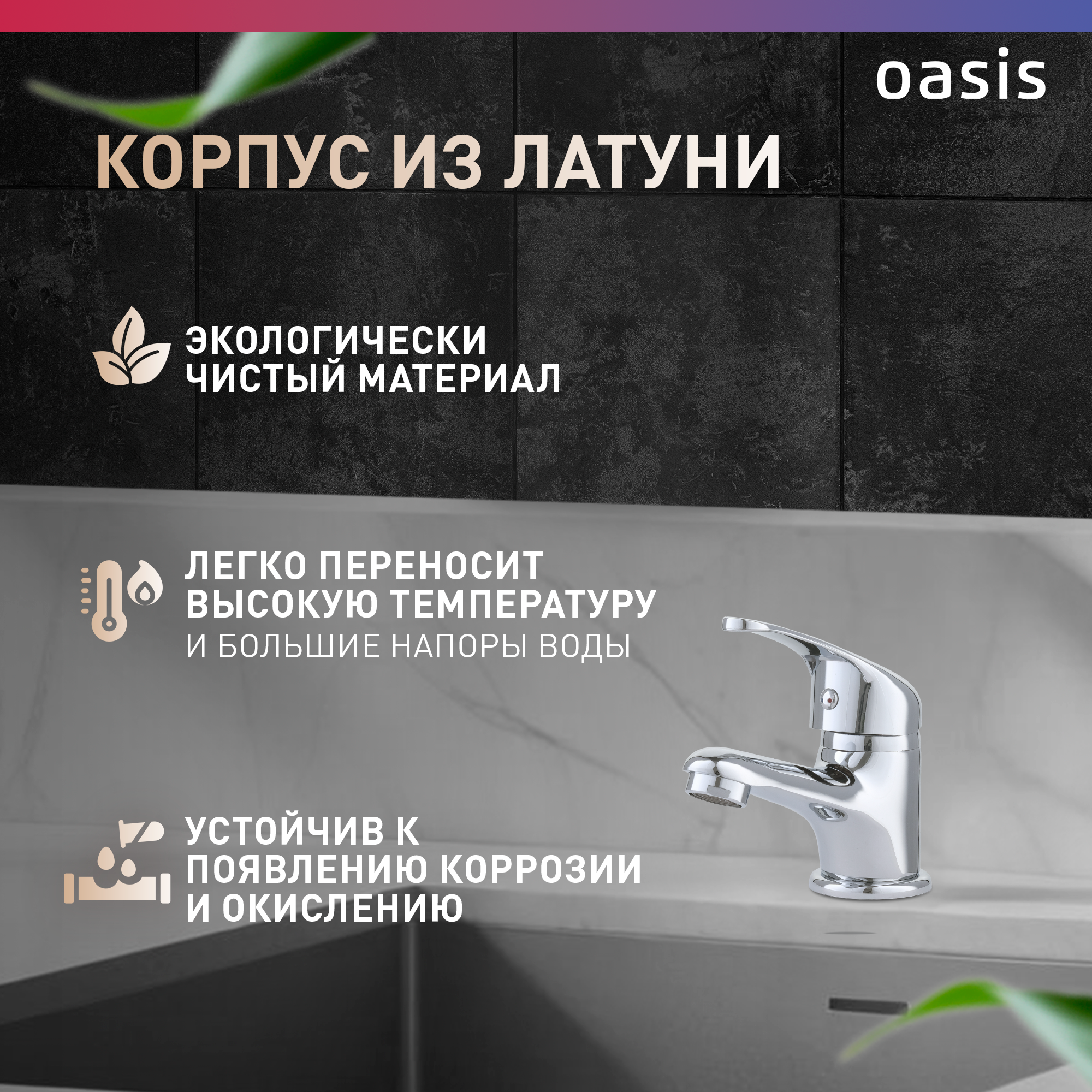 Смеситель маленький для раковины в ванную из латуни однорычажный Oasis L3000MSh_Mic интересное: