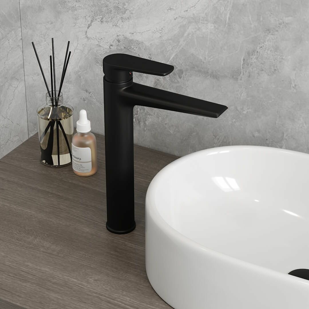 Смеситель для раковины высокий черный матовый Teymi Kati T10218 интересное: