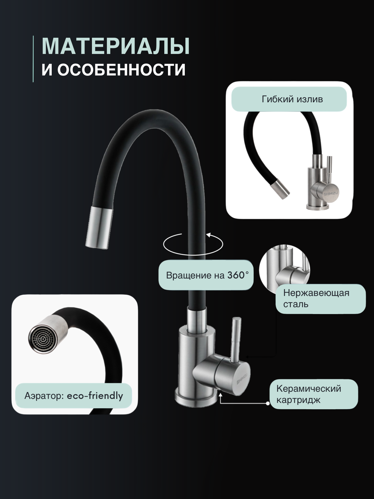 Смеситель для раковины SHIMIZU, смеситель для кухни с коротким гибким изливом, черный интересное: