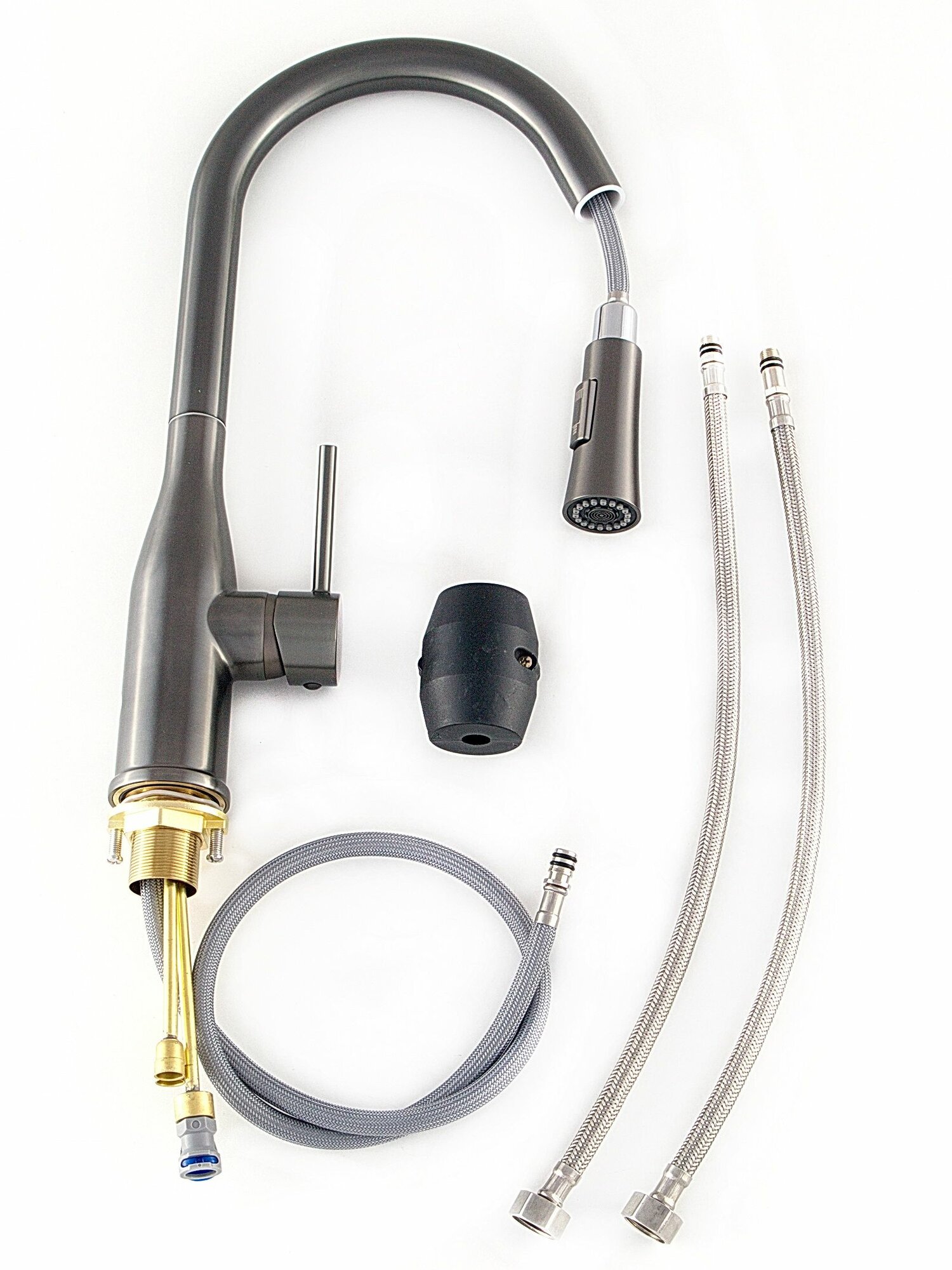 Купить Смеситель для кухни Diadonna D60-0002QH с гибким выдвижным изливом, 2 режима струи, латунь, серый графит
