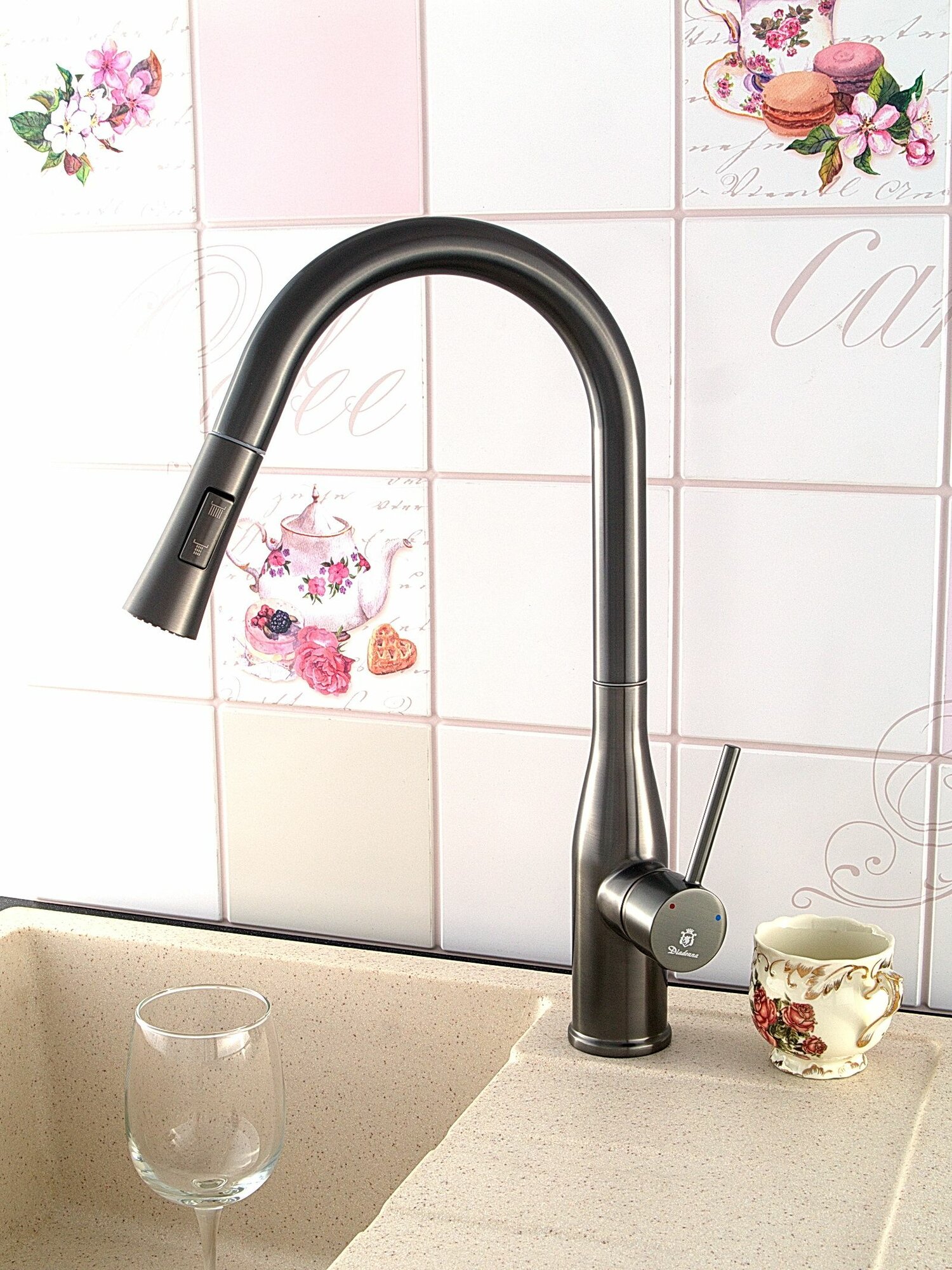 Смеситель для кухни Diadonna D60-0002QH с гибким выдвижным изливом, 2 режима струи, латунь, серый графит интересное:
