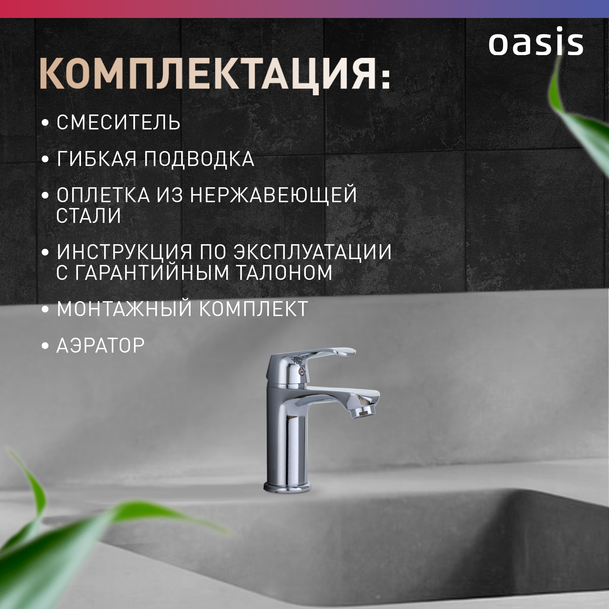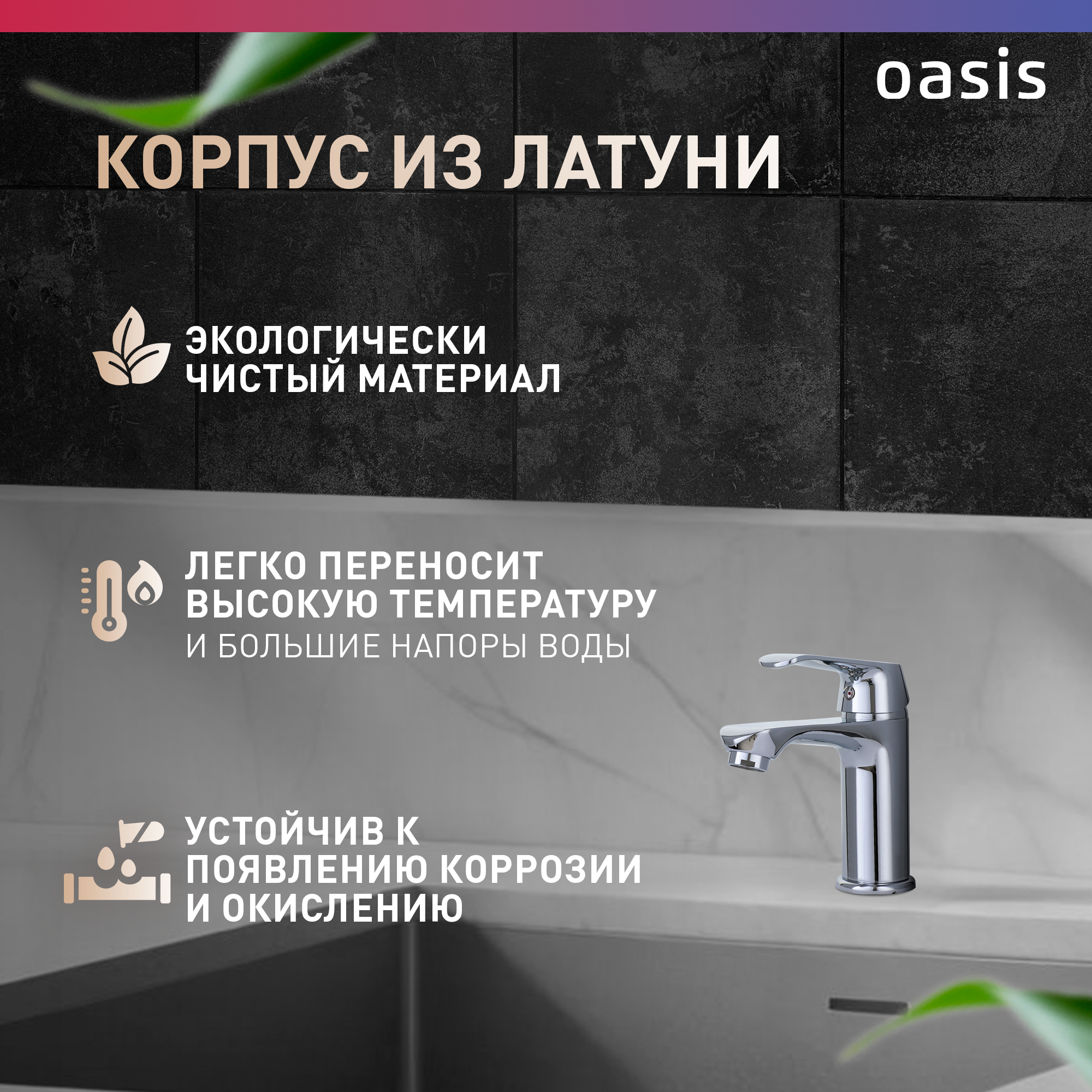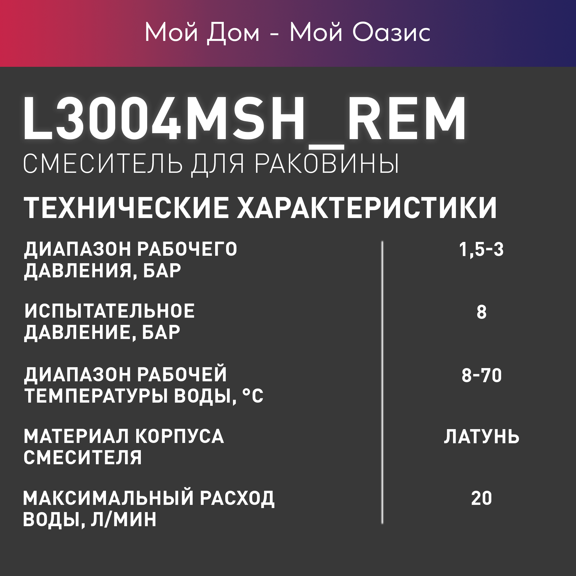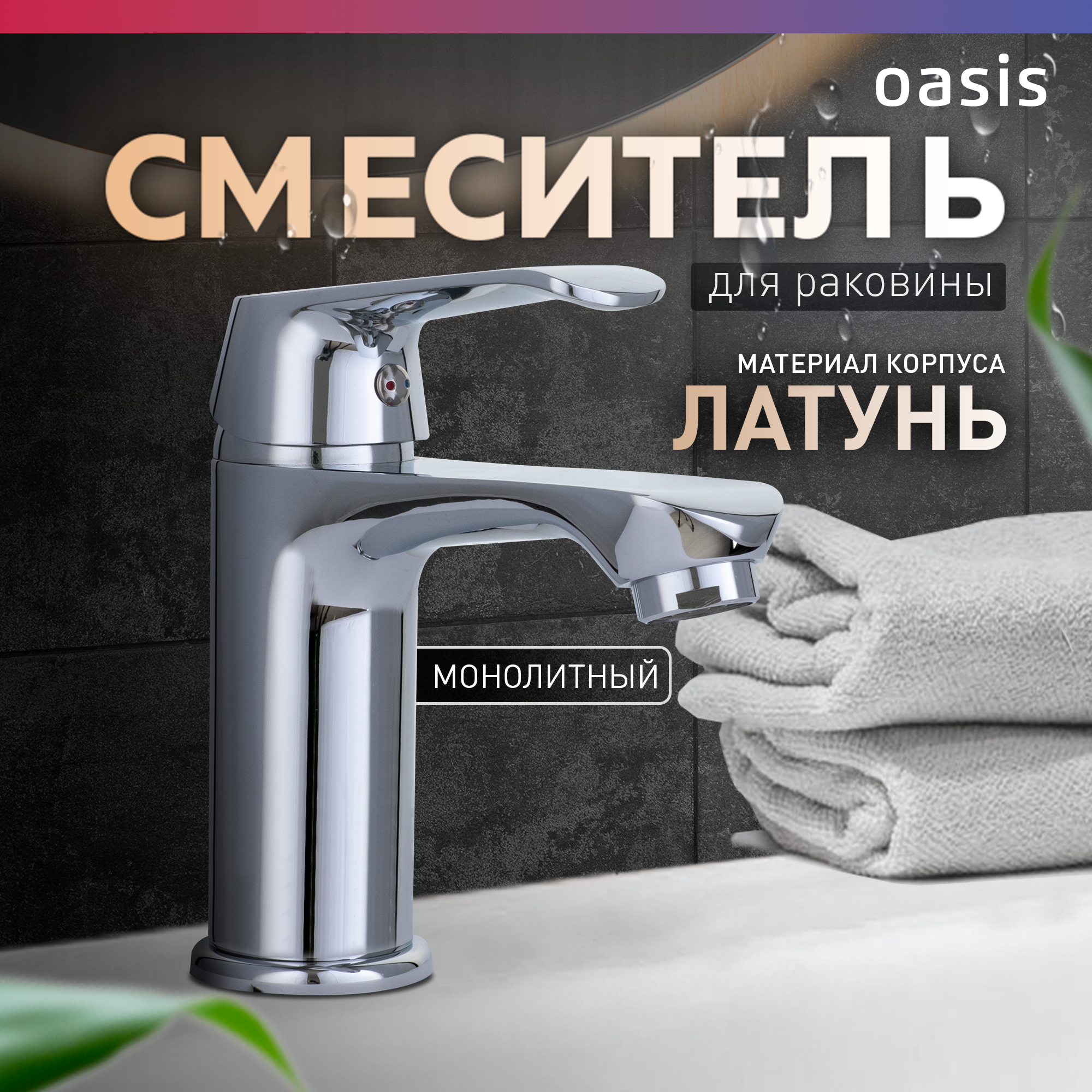 Смеситель для раковины в ванную из латуни монолитный Oasis L3004MSh_Rem интересное: