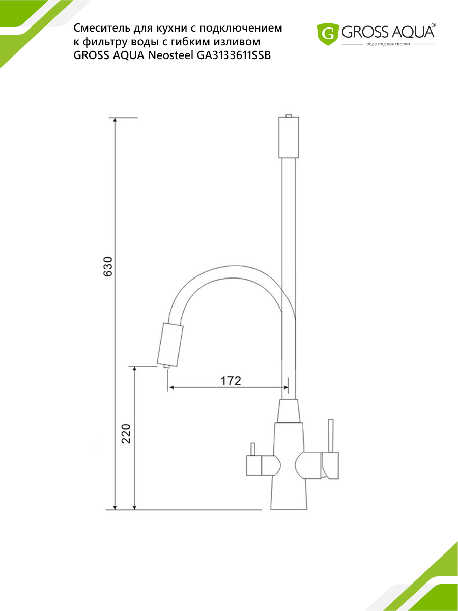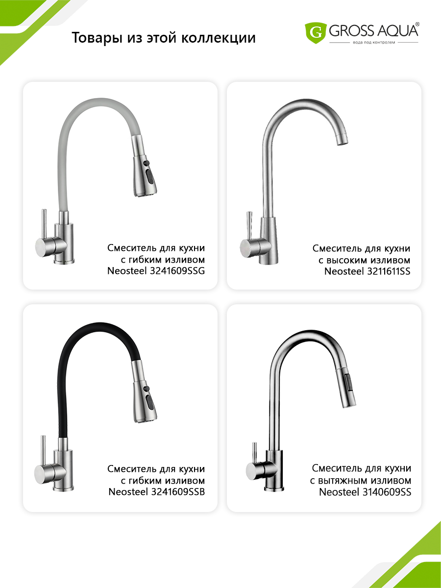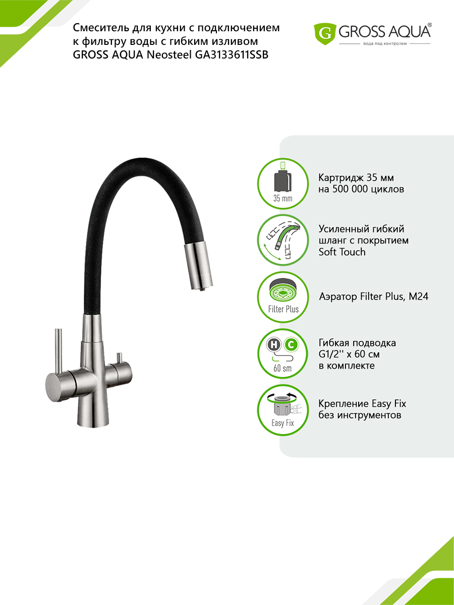 Смеситель для кухни с гибким изливом c подключением к фильтру воды Neosteel интересное: