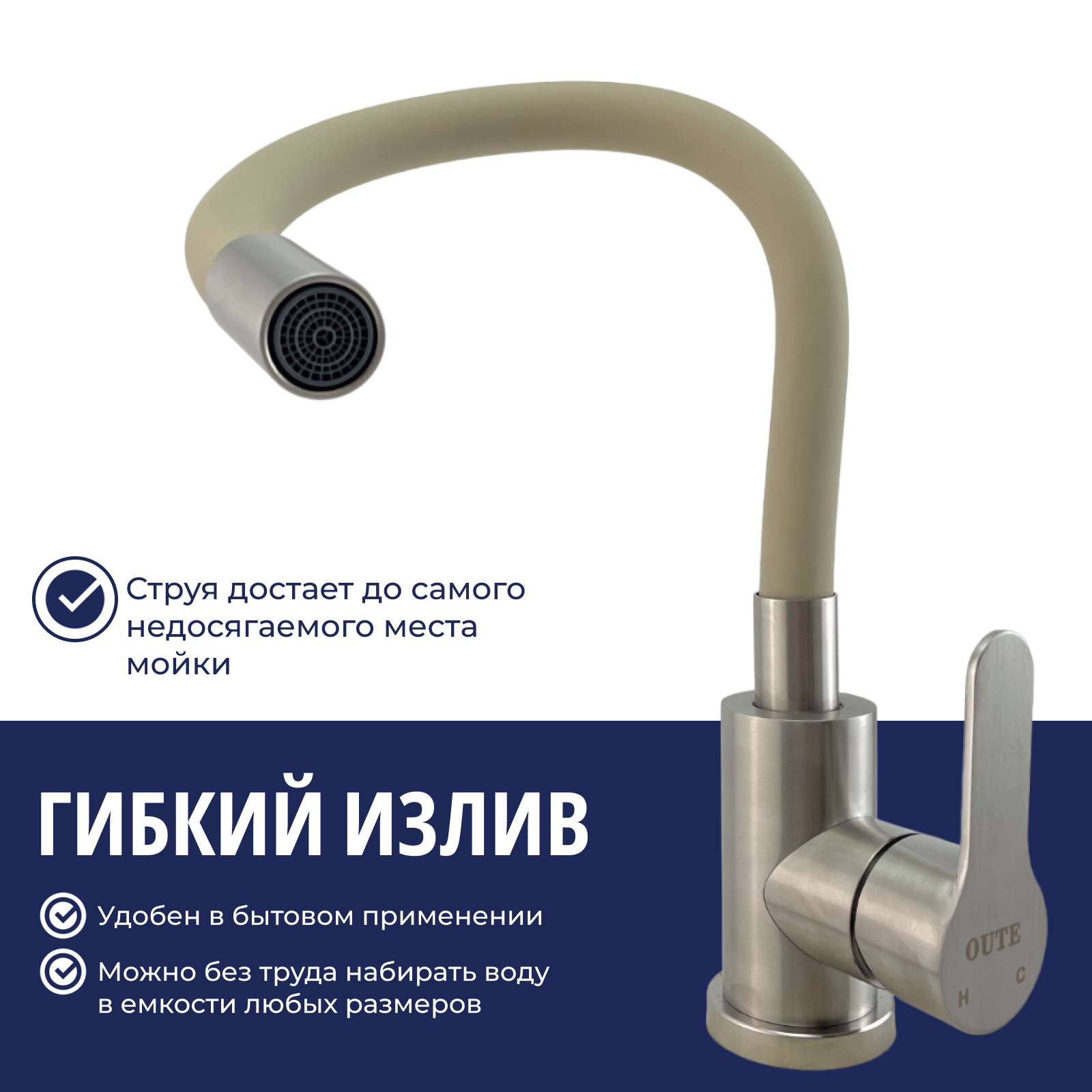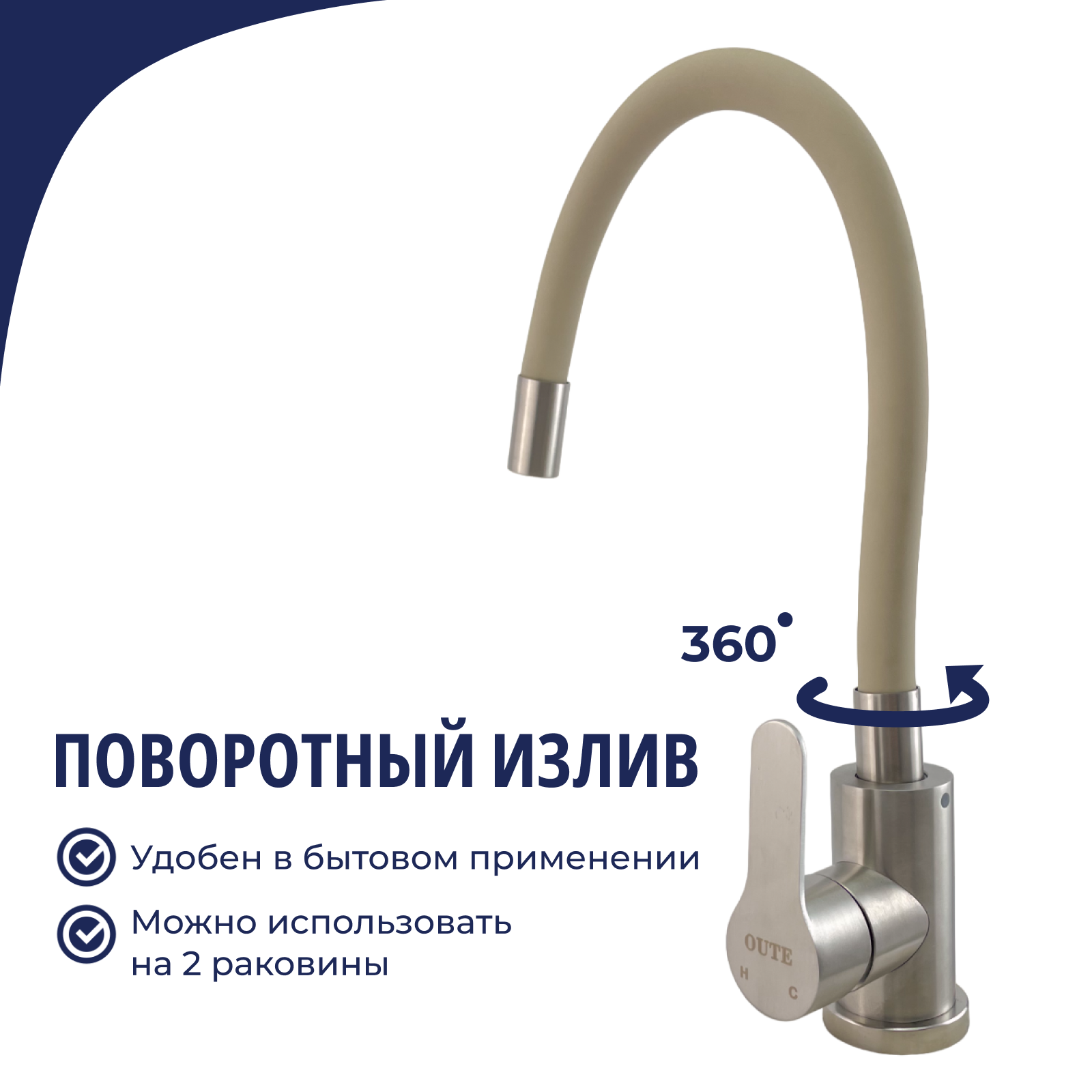 Смеситель для кухни с гибким изливом бежевый нержавеющая сталь интересное: