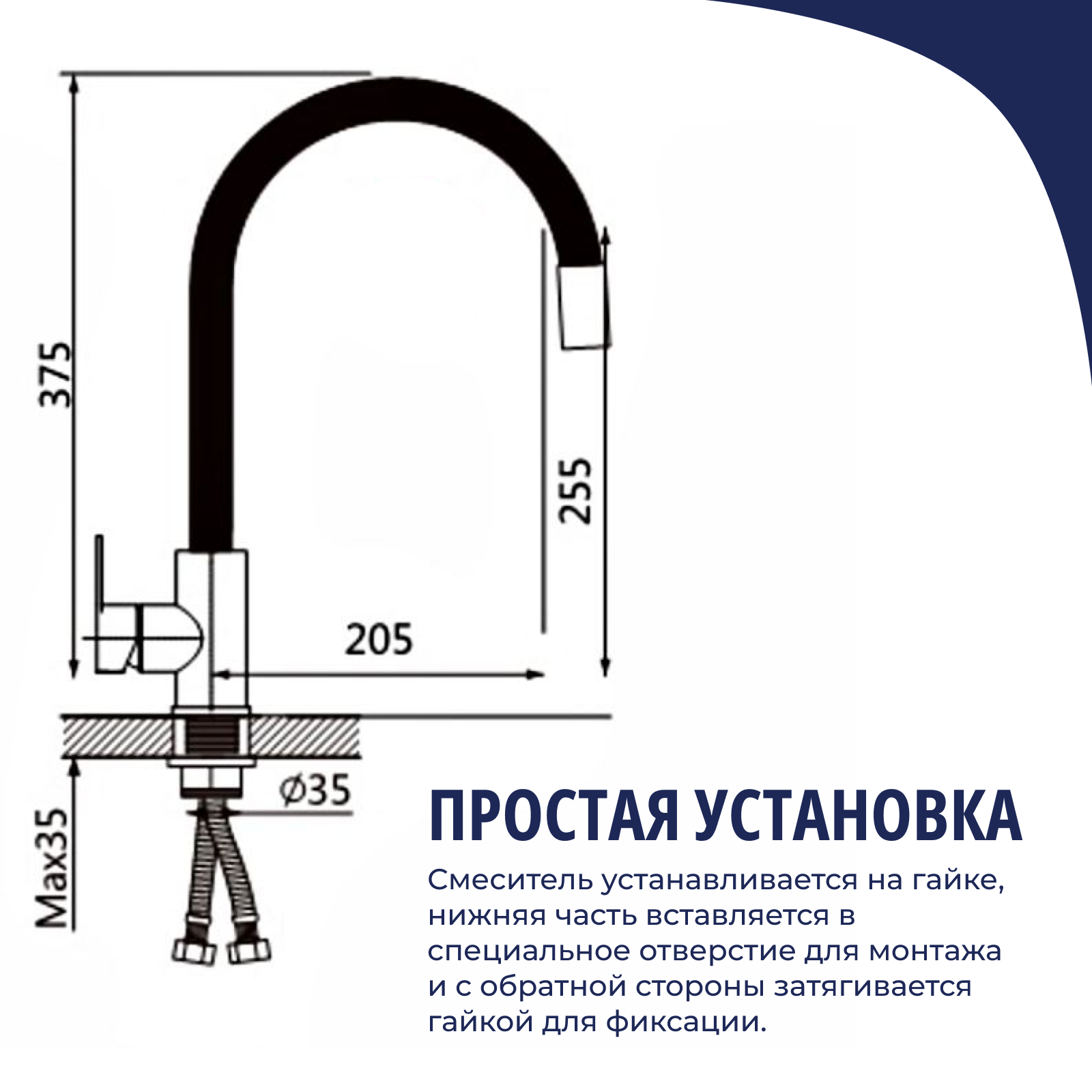 Смеситель для кухни с гибким изливом черный хром нержавеющая сталь