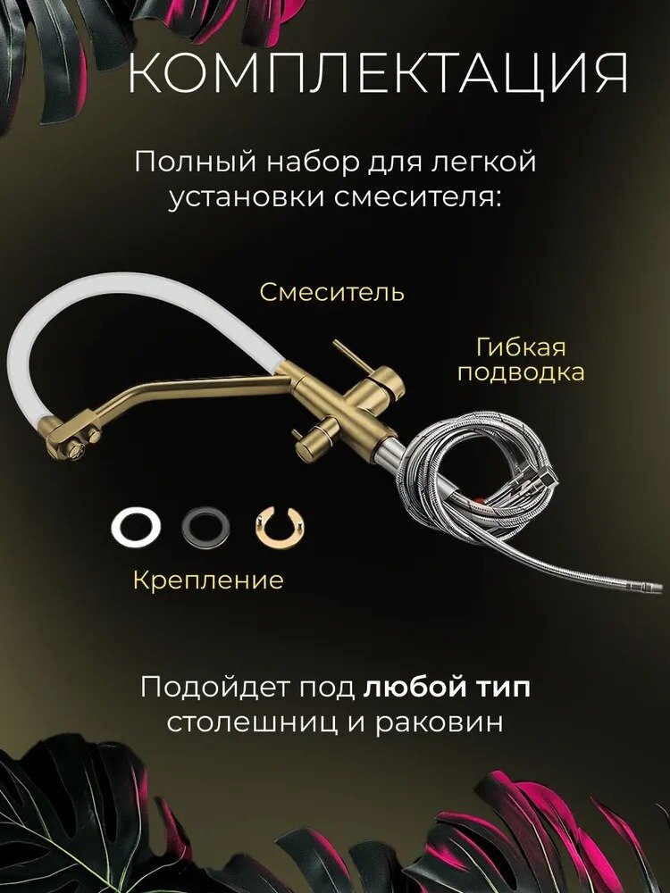 СохранитьСмеситель для кухни гибкий с фильтром, латунь, TIOKO TI-0111G интересное: