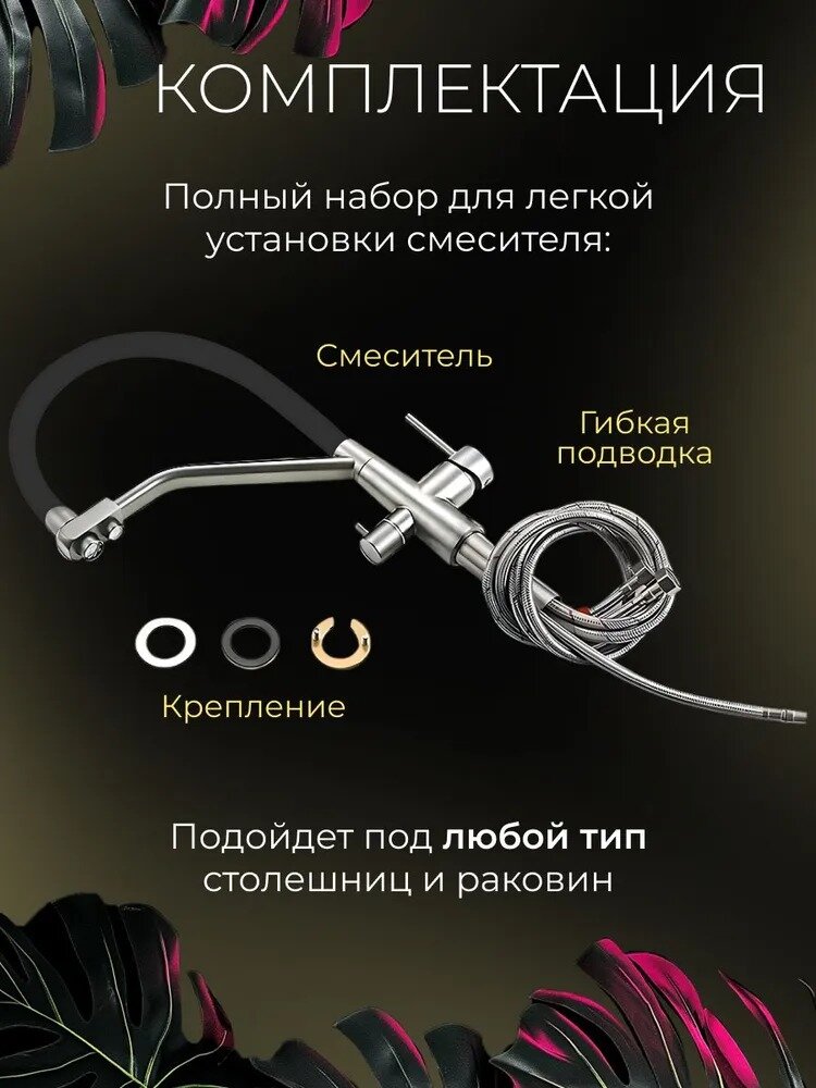 Смеситель для кухни с гибким изливом фильтром кран на кухню, TIOKO