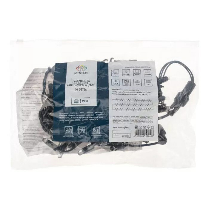 Neon-night Гирлянда Нить 10 м, постоянное свечение, 220В 305-178