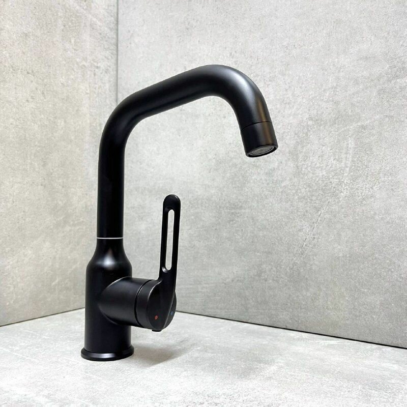 СохранитьСмеситель для раковины HAIBA HB10825-7, поворотный излив, цвет: черный, материал: нержавеющая сталь. интересное: