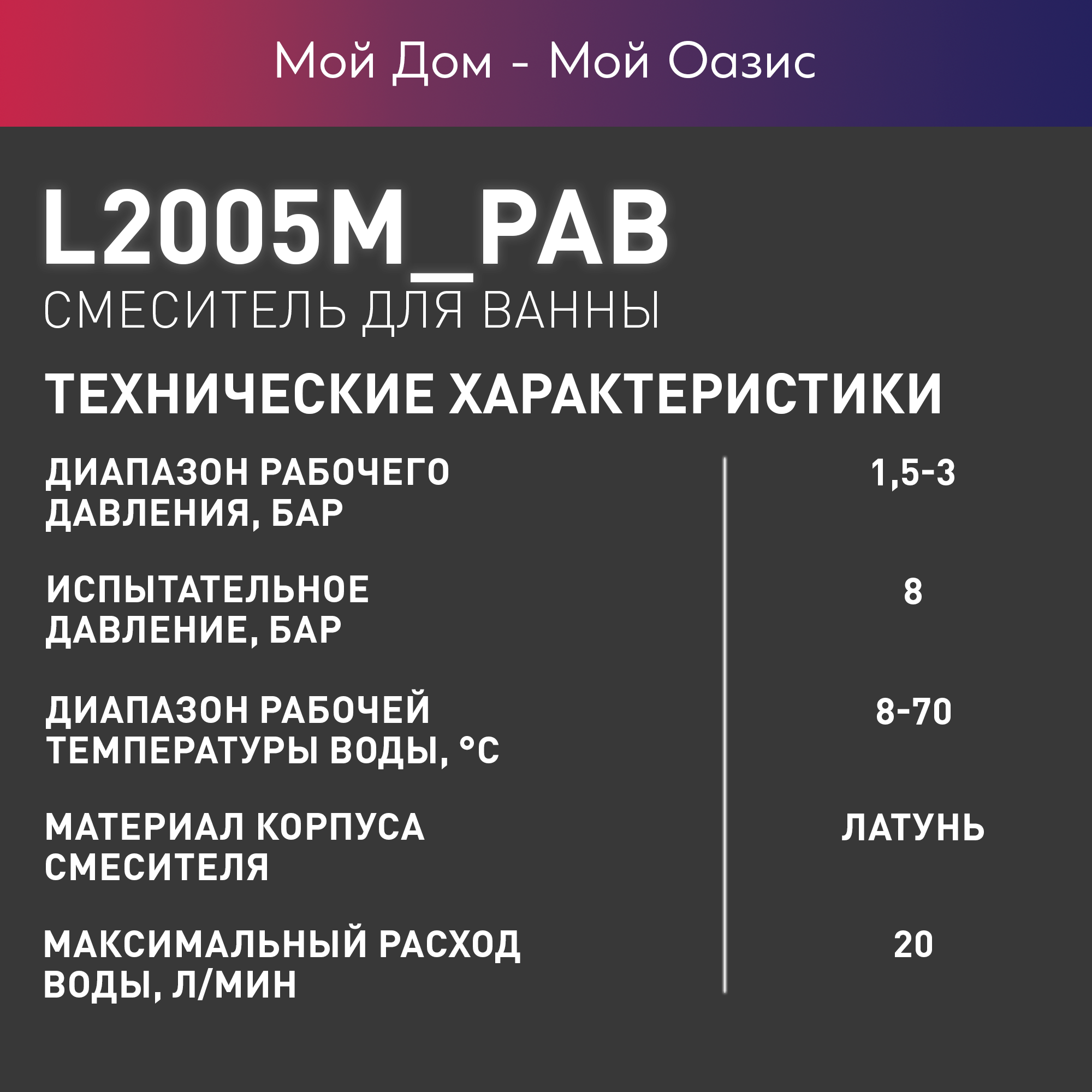 Смеситель для ванны с душем и коротким изливом из латуни Oasis L2005M_Pab интересное: