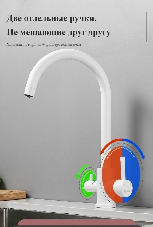 Купить Смеситель для кухни с подключением фильтра питьевой воды HB43828-8, белый