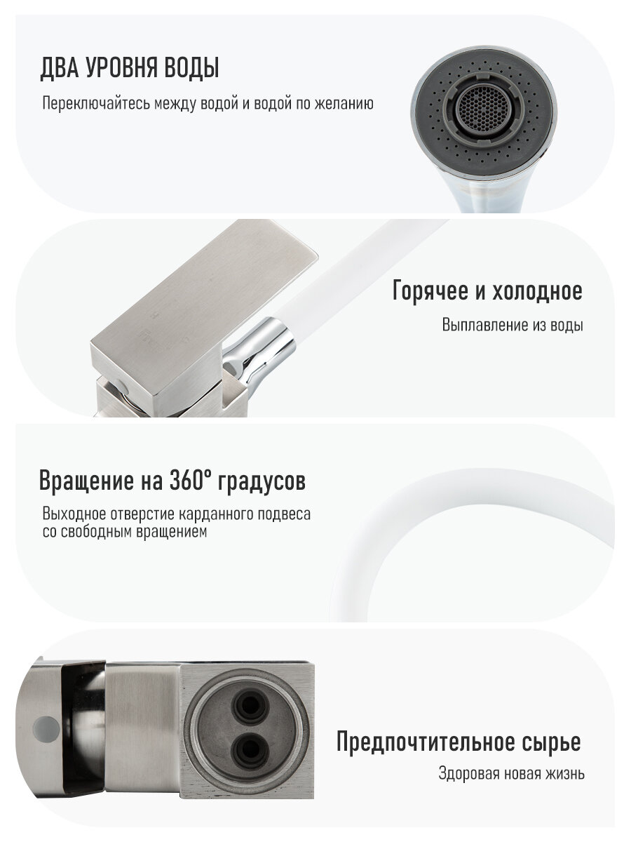 Смеситель Frap F48990+W13, кухонный, гибкий излив, нержавеющая сталь, Белый интересное: