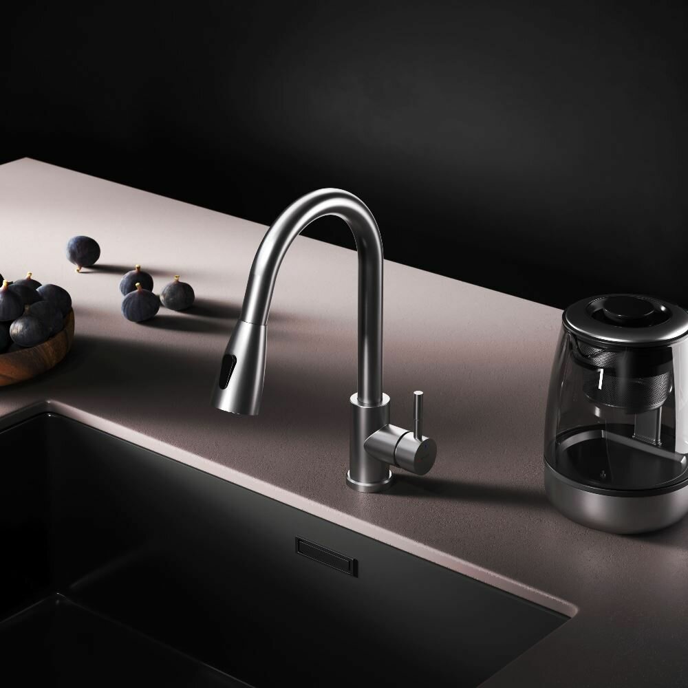 Смеситель для кухни AM.PM X-Joy S с гибким изливом, серый/хром