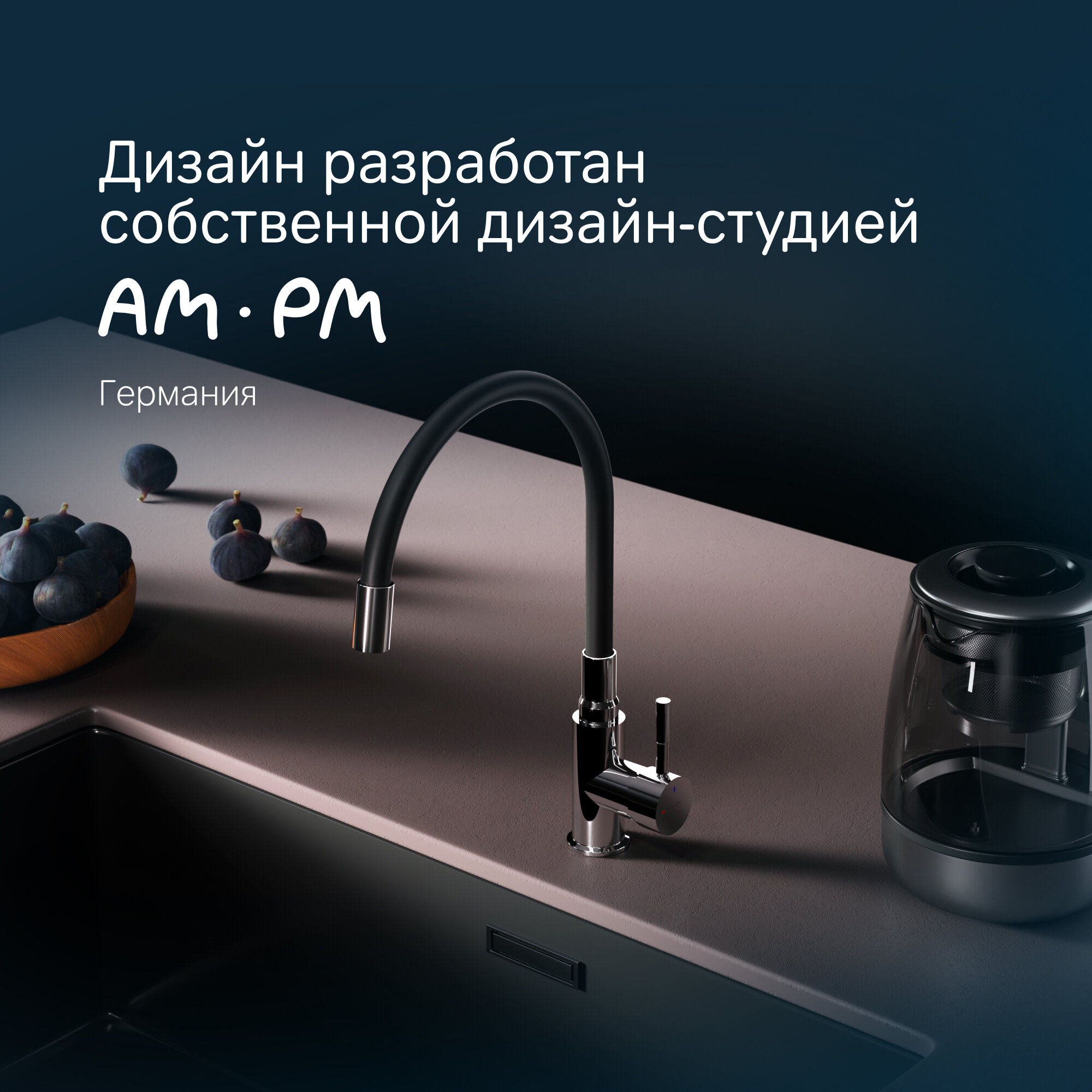 Смеситель для кухни AM.PM X-Joy S с гибким изливом, черный/хром интересное: