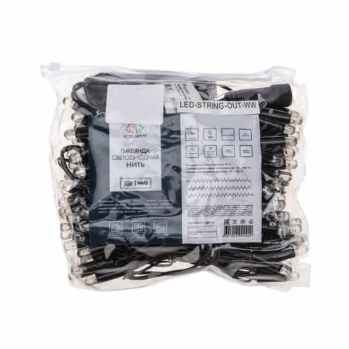 Гирлянда NEON-NIGHT 305-186 нить 10м, постоянное свечение, прозрачный ПВХ, 230В, цвет: тёплый белый