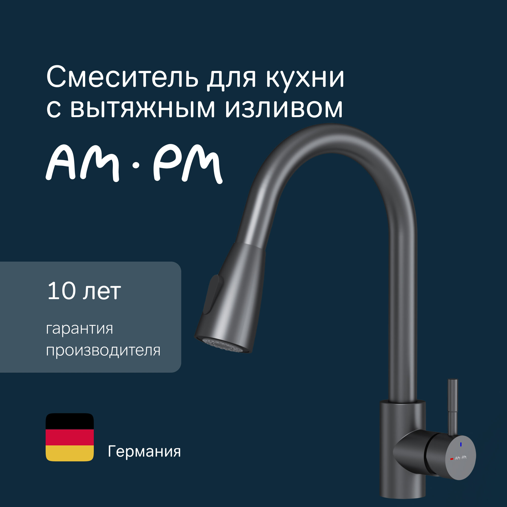 Купить Смеситель для кухни AM.PM X-Joy S с вытягивающимся изливом, черны