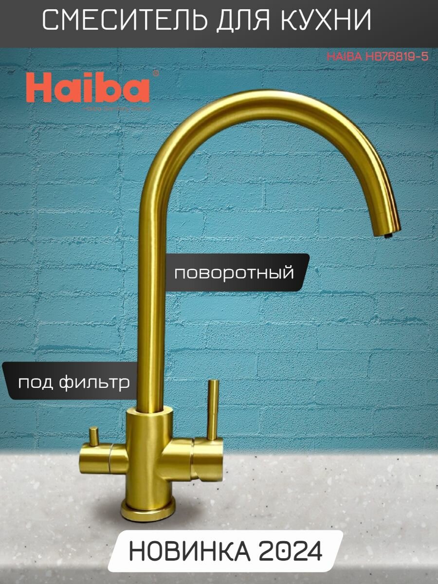 Смеситель для кухни, под фильтр, с высоким, поворотным изливом Haiba HB43828-5, золотой. интересное: