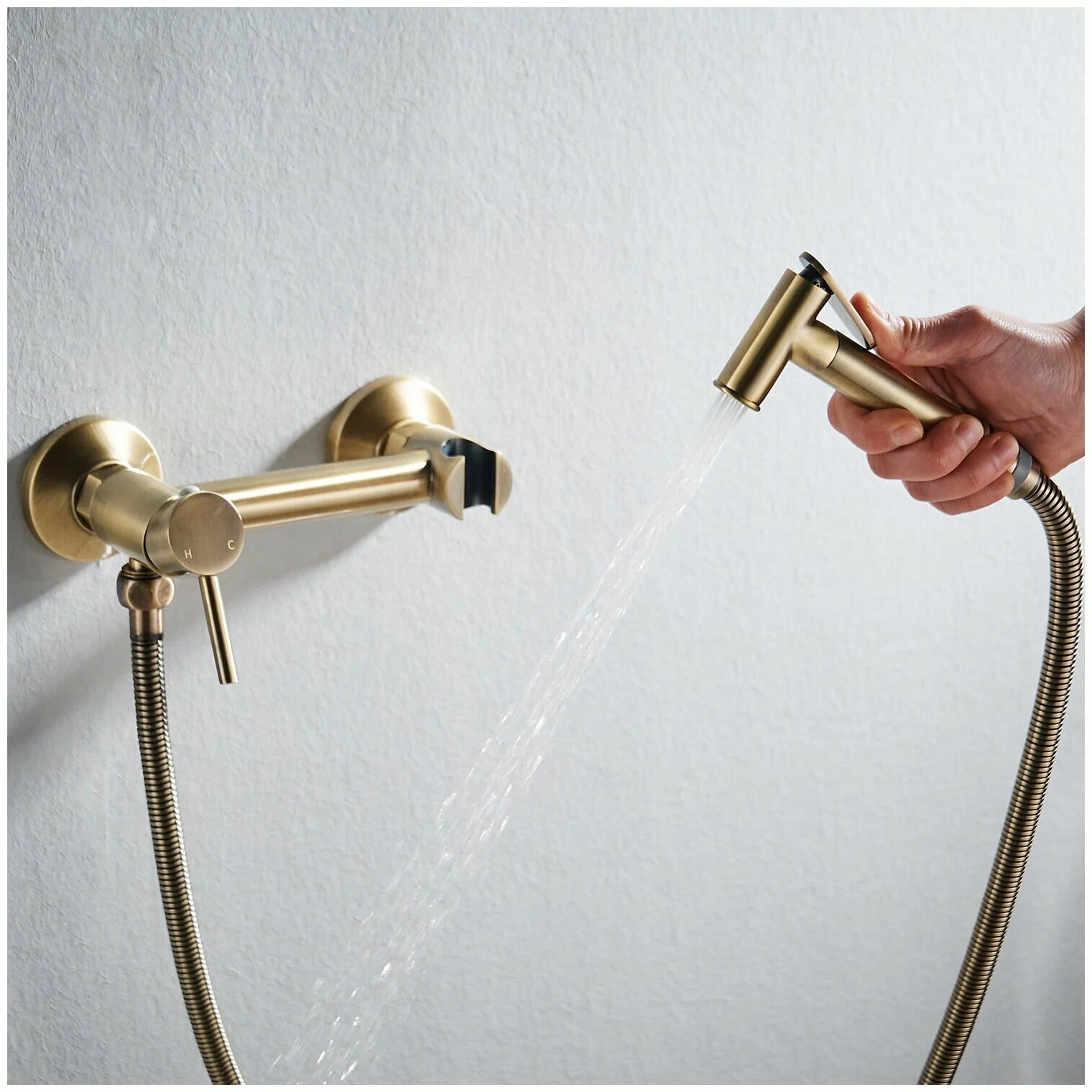 Смеситель с гигиеническим душем Haiba латунный без излива, бронзовый интересное: