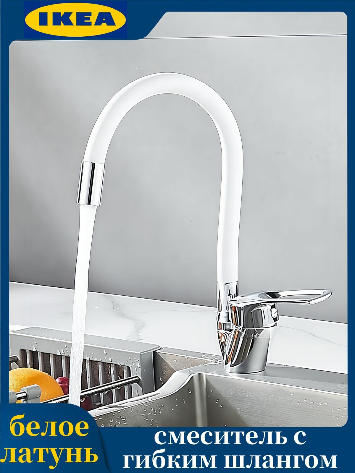 Смеситель для кухни IKEA из латуни, белый, устойчивый к коррозии, с гибкой насадкой, подходит для кухонной раковины