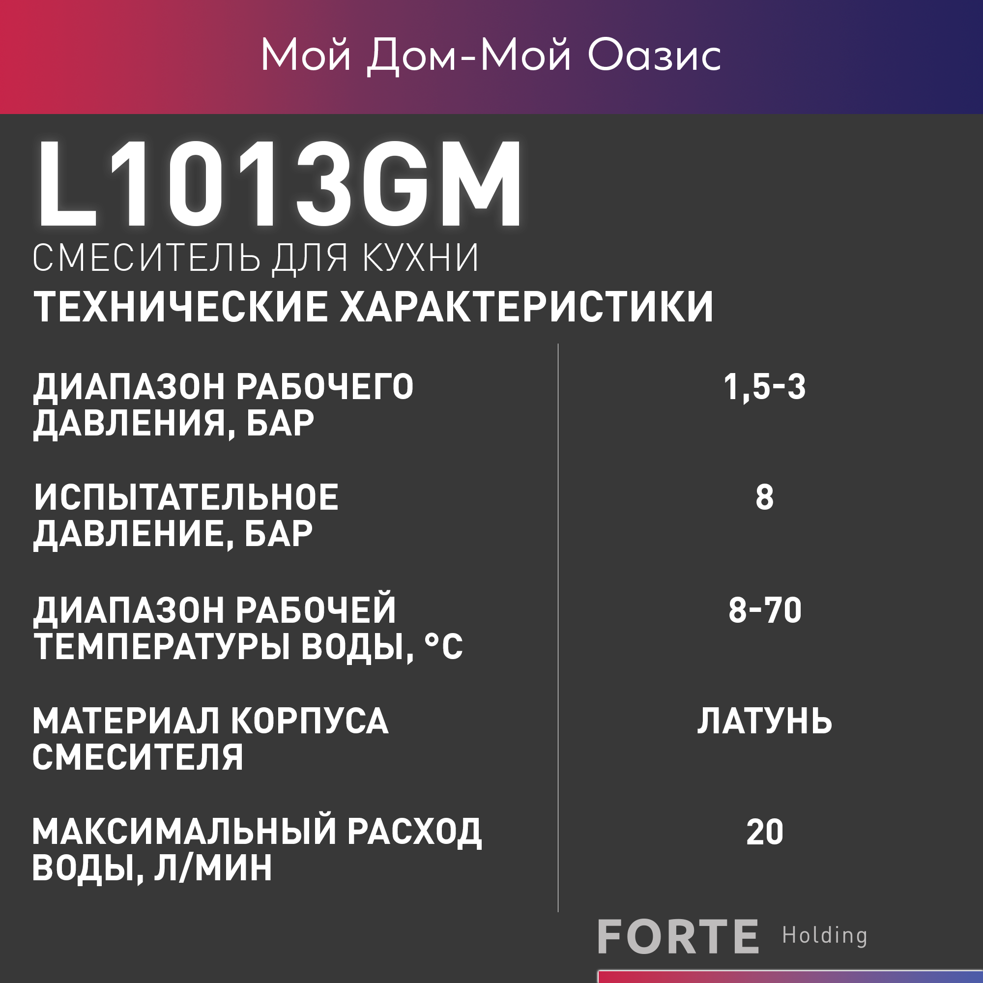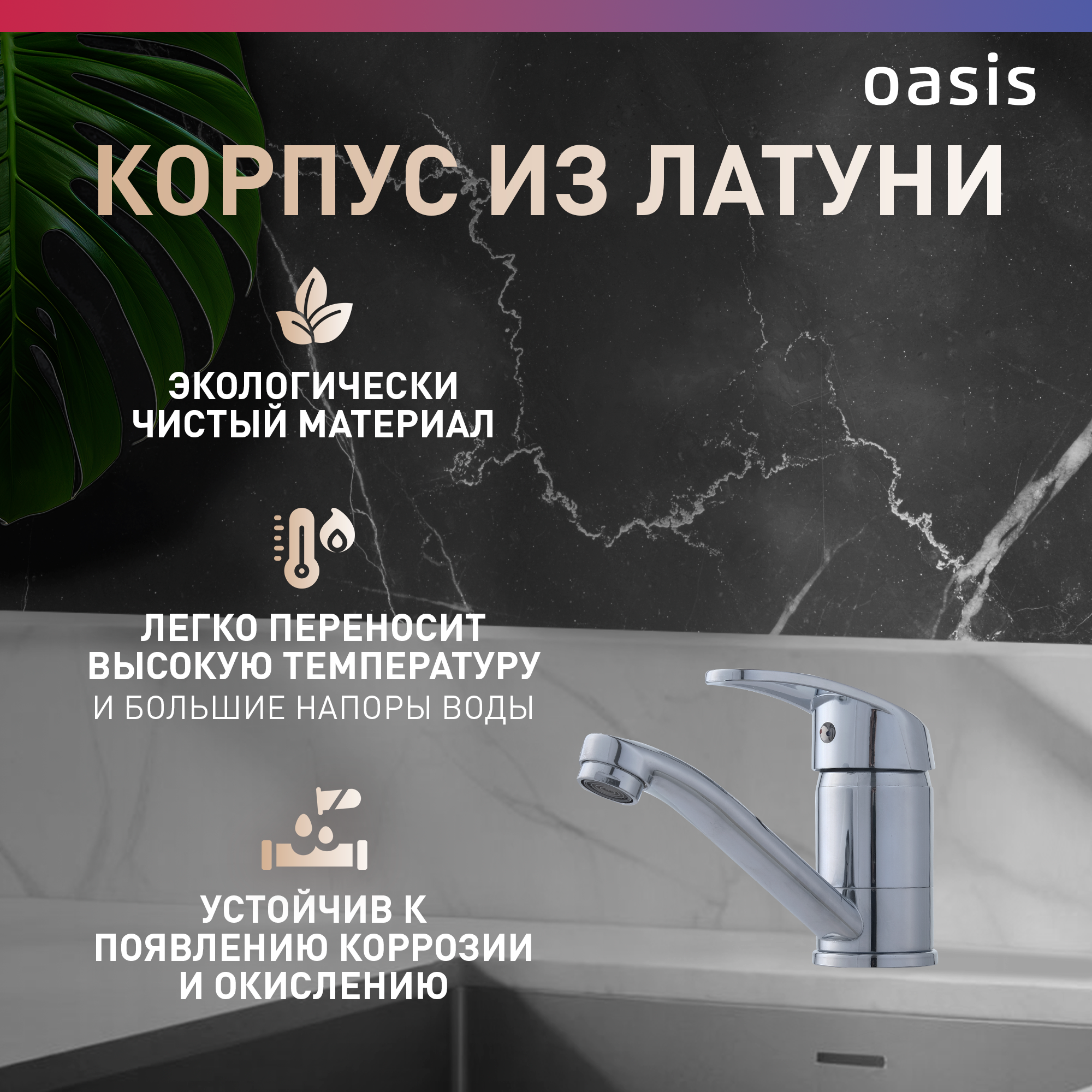 Смеситель для кухни на мойку с коротким изливом из латуни однорычажный Oasis L1013GM интересное:
