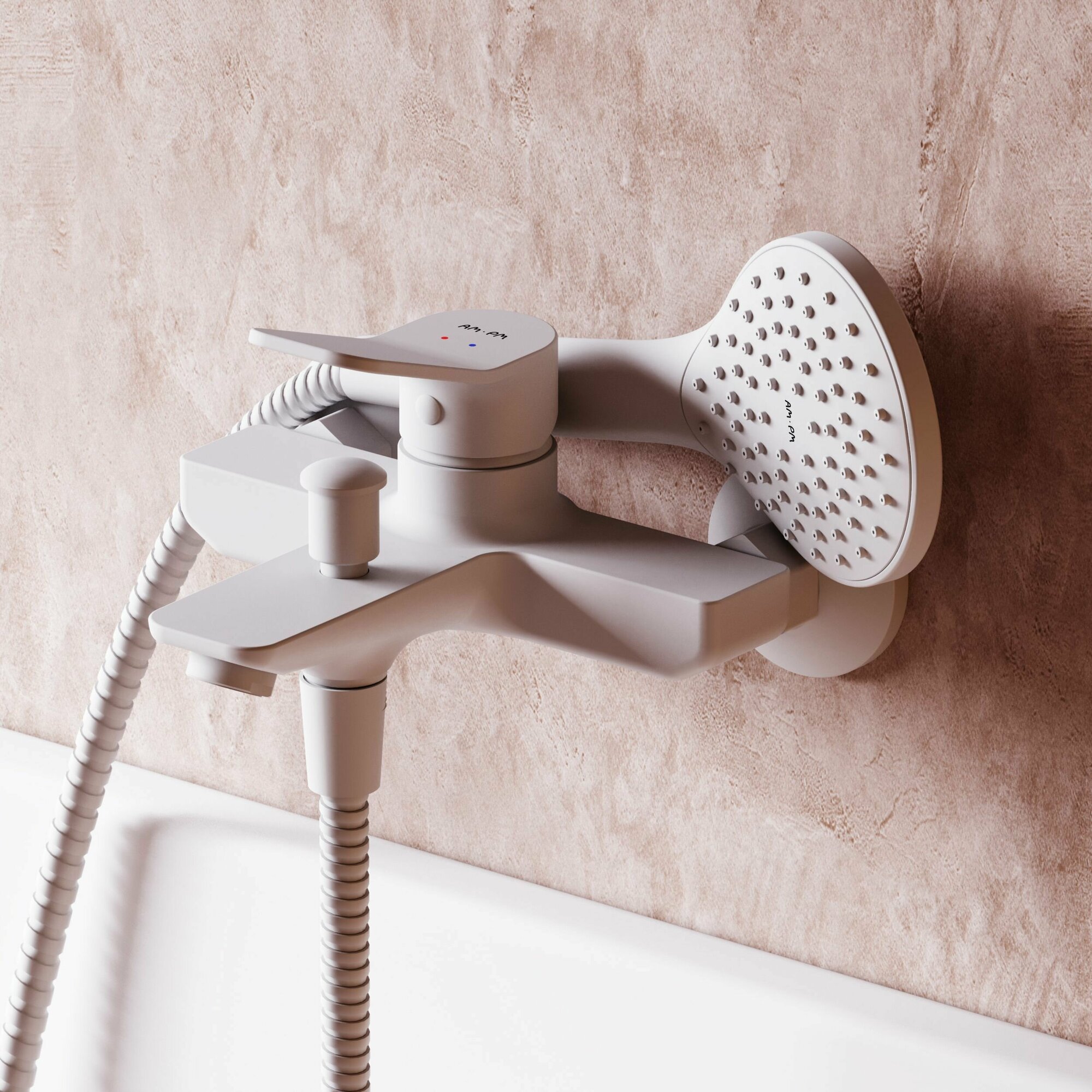 Купить Смеситель для ванны с душем AM.PM Brava белый, короткий излив, керамический картридж SoftMotion, латунь