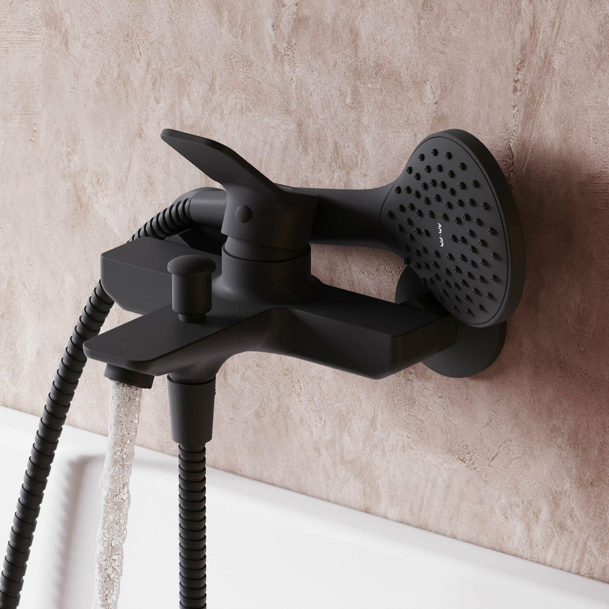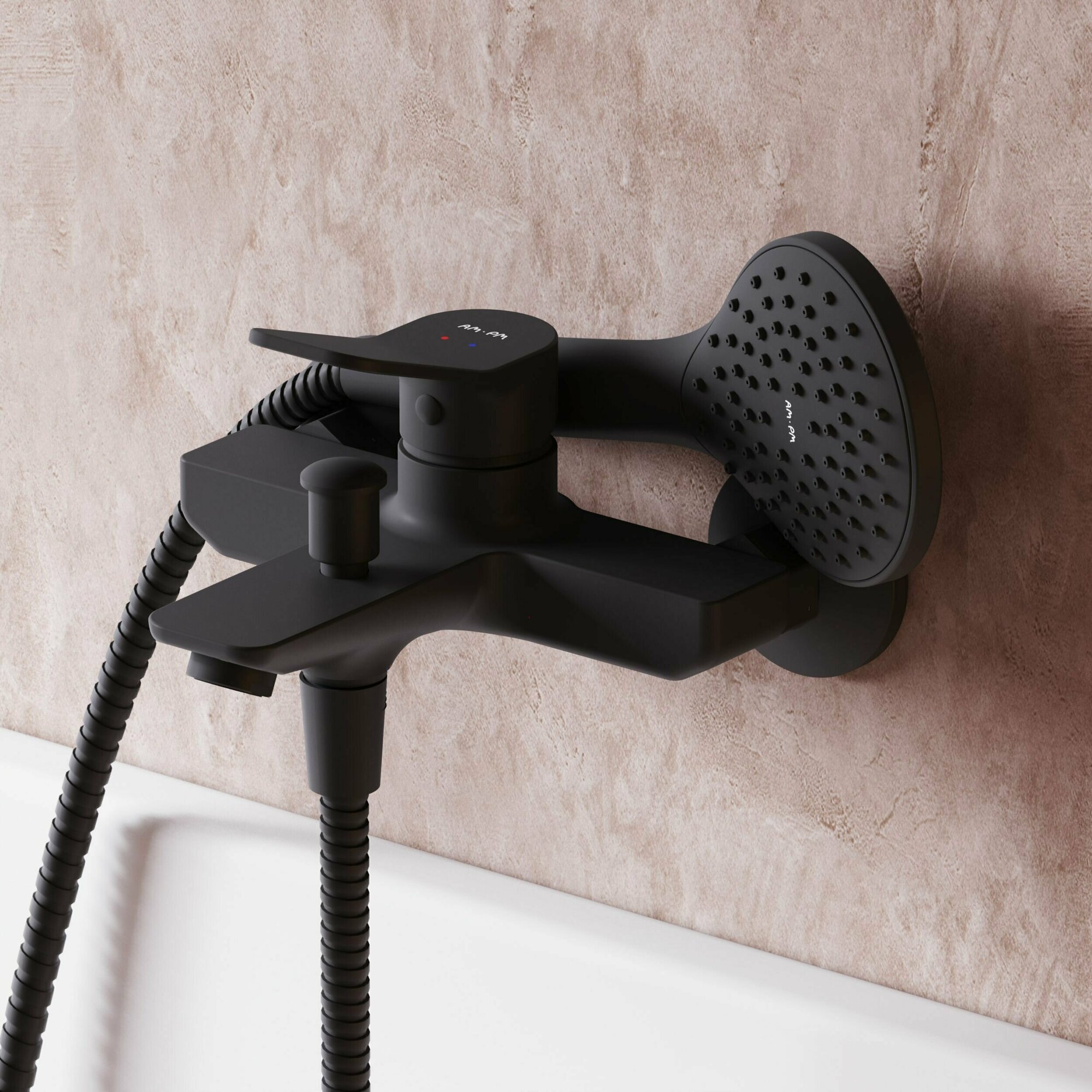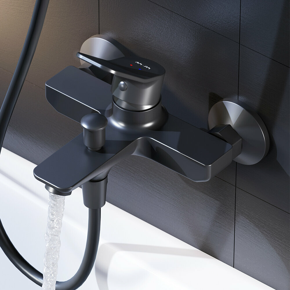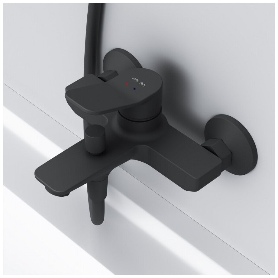 Смеситель для ванны AM.PM Brava черный матовый, с душем, короткий излив 164 мм, интересное: